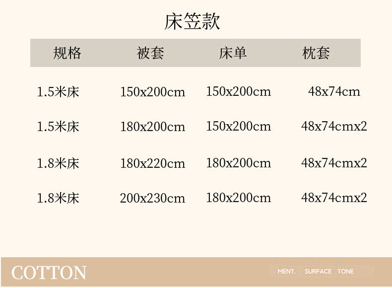 【床笠款】1.5四件套-被套180x220 | ¥65.00 |