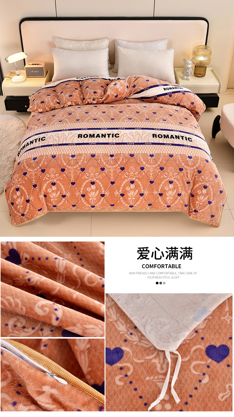 商品名称:2025直播爆款印花牛奶绒印花单被套220克法莱绒被套单件枕套 爱心满满
