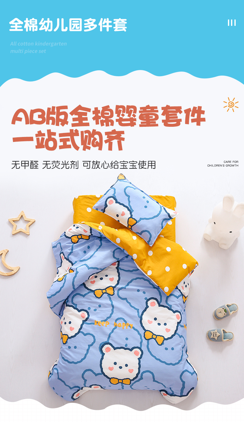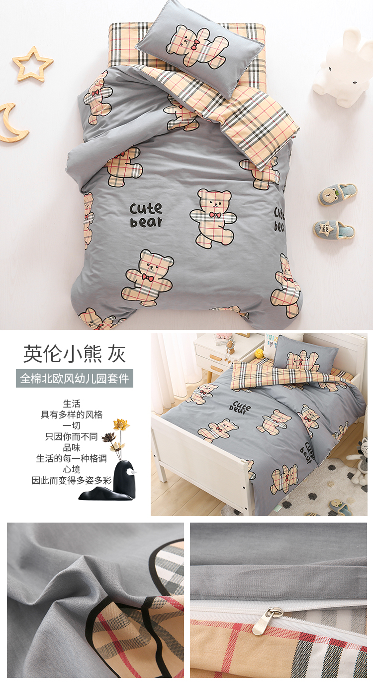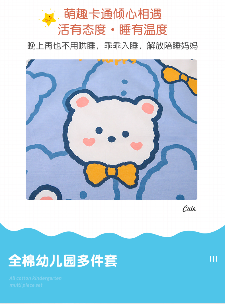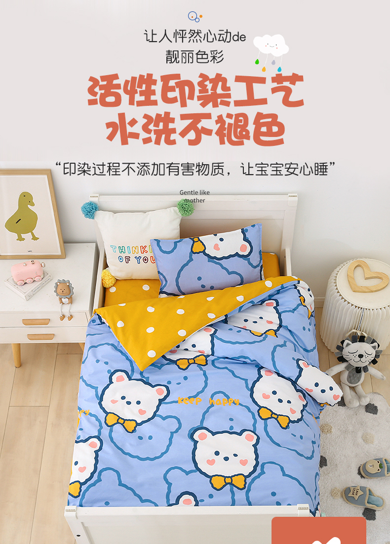 当前位置: 91家纺网 > 商品网购 > 床品套件 > 三件套 > 鱼宝 2025新款全棉幼儿园套件 三件套—童真系列 领结熊
