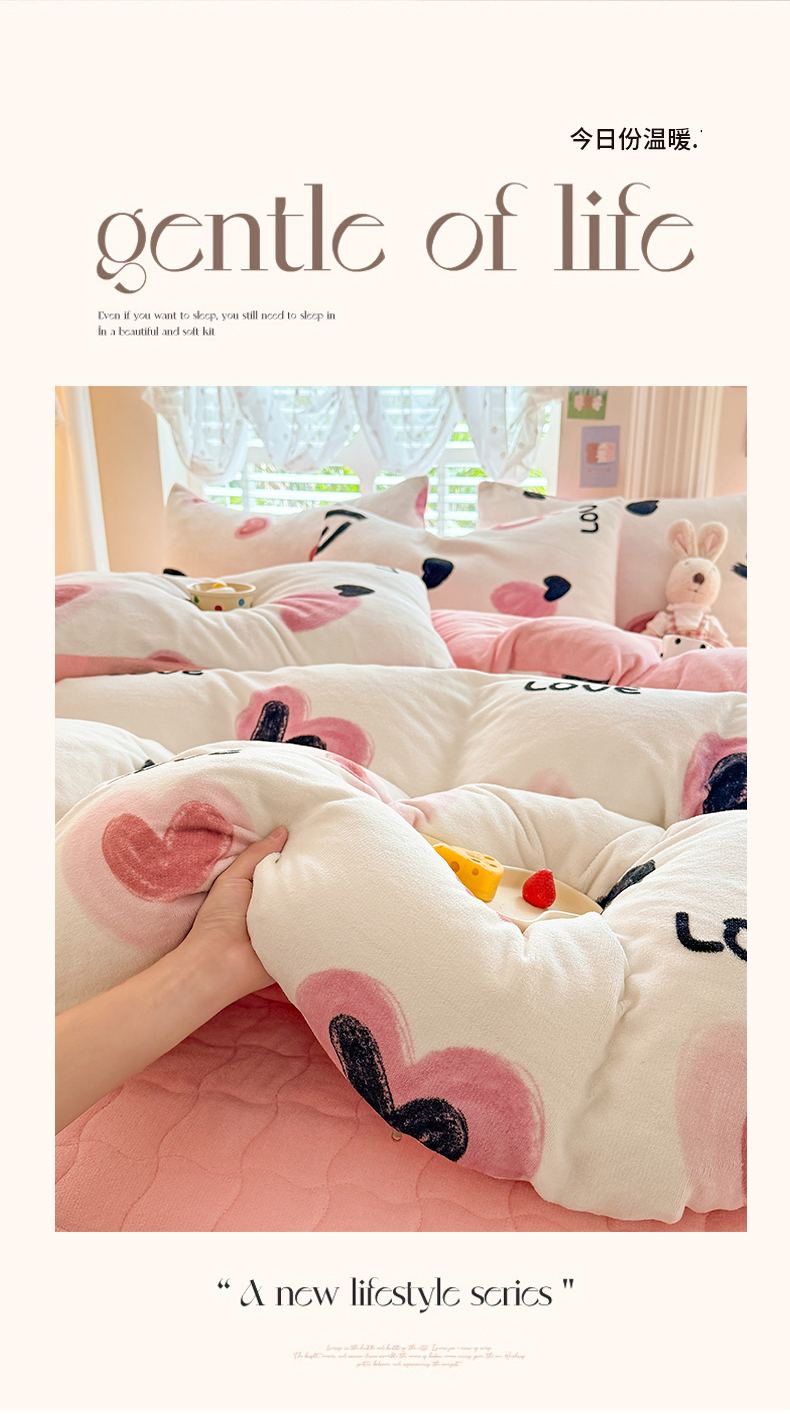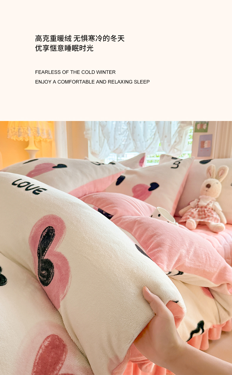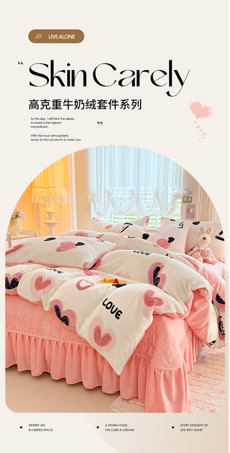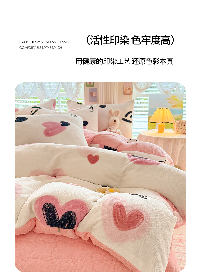 当前位置: 91家纺网 > 商品网购 > 床品套件 > 四件套 > 其它四件套 > 金盛皇朝家纺 2025新款高克重印花牛奶绒床单床盖单件三件四件套 爱心Love