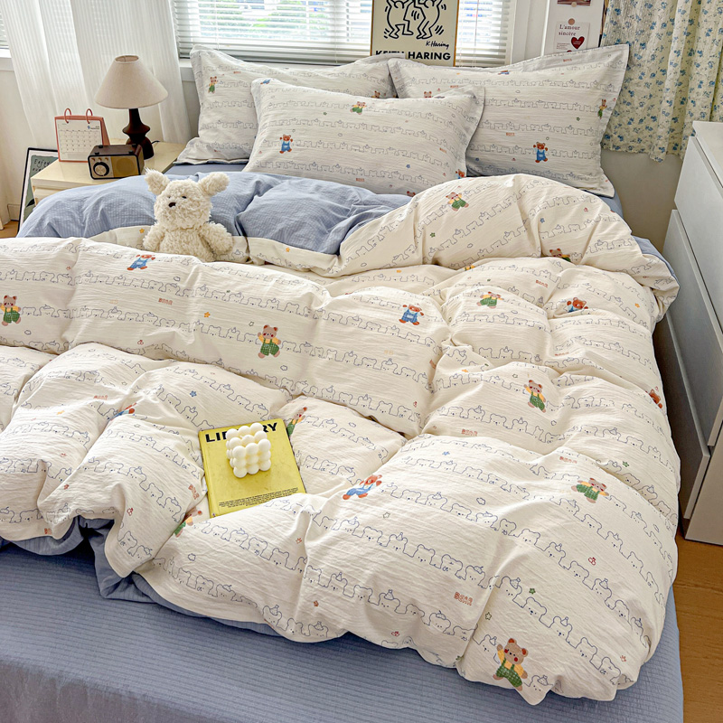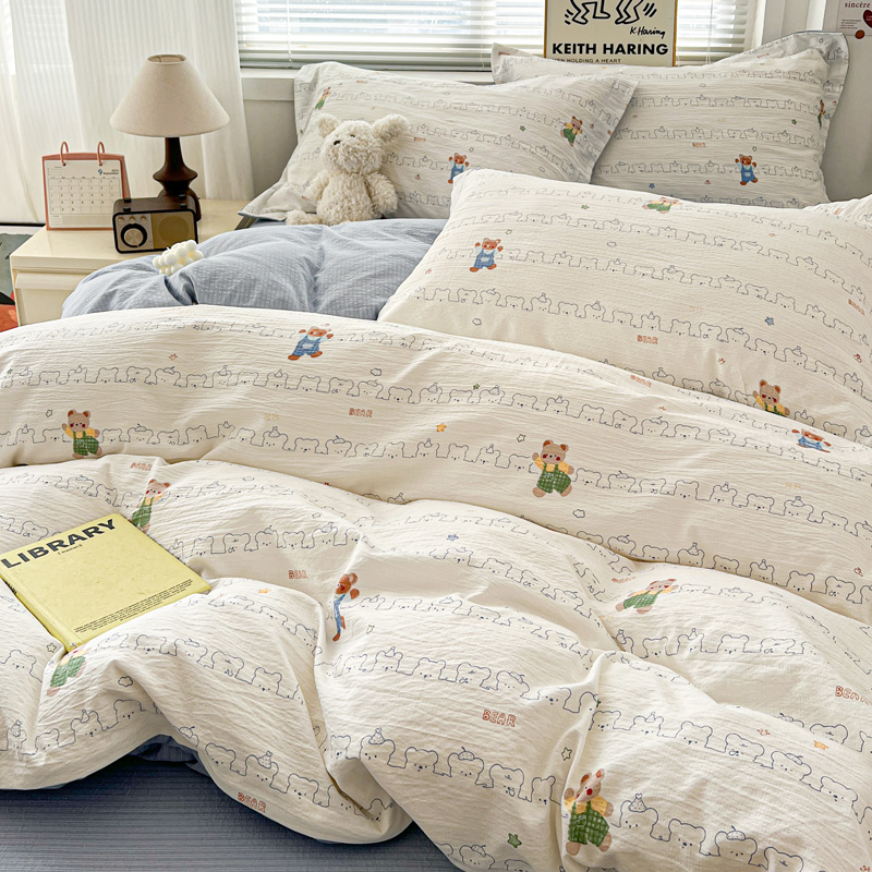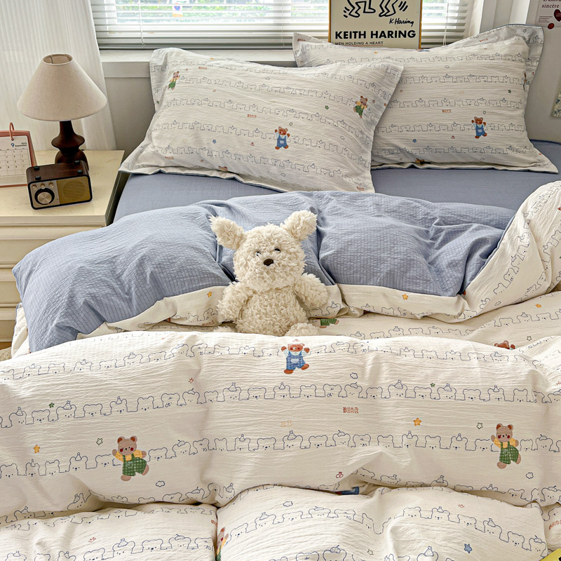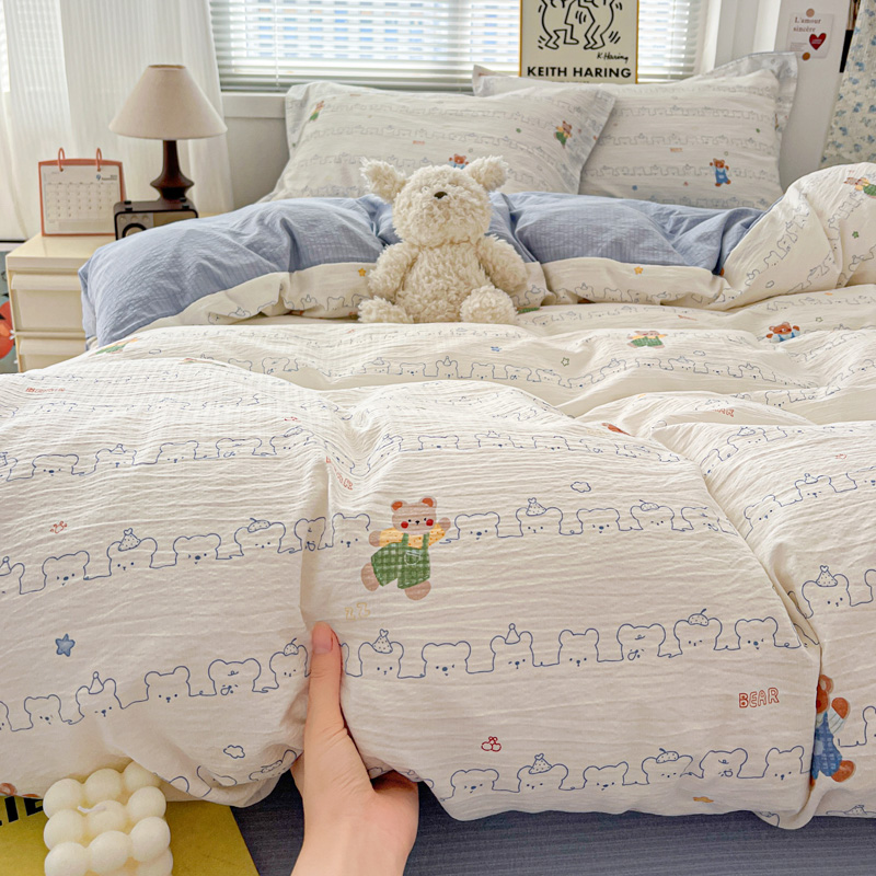 商品名称:仟网汇 2025新款古法水洗棉小布袋四件套 假日小熊