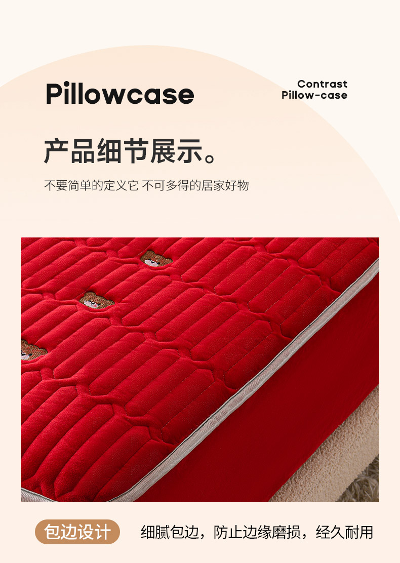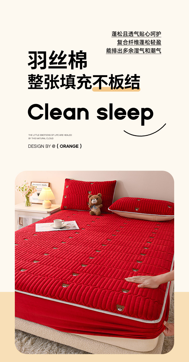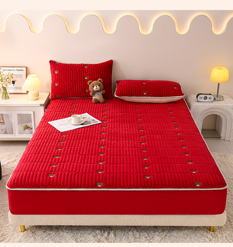 • 91家纺网 家纺一手货源 找家纺 推推家纺 2025新款刺绣夹棉宝宝绒床笠牛奶绒床垫保护套 三色熊-酒红