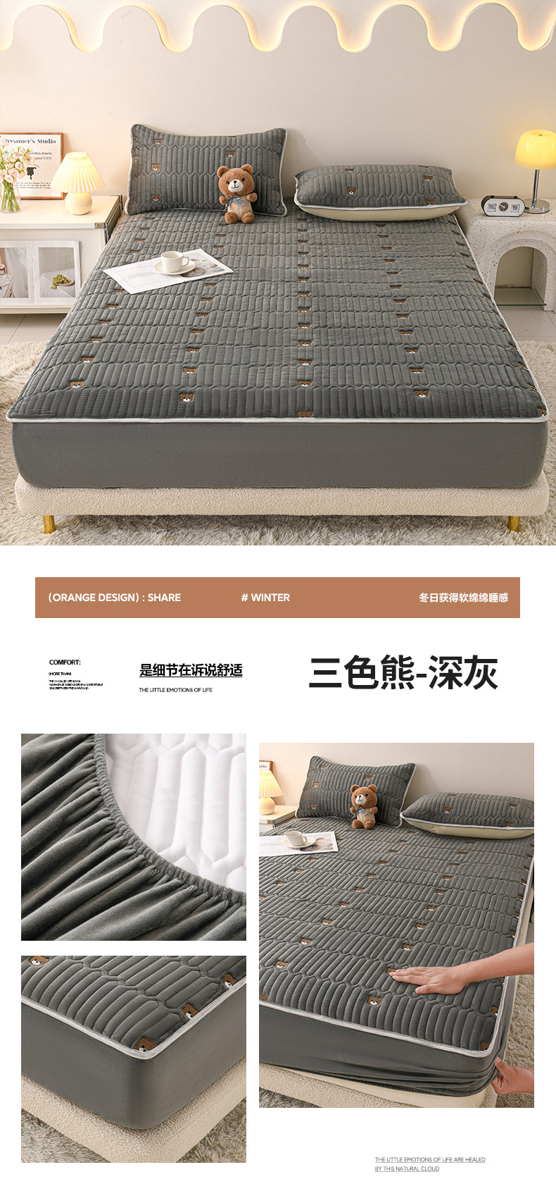 (总)推推家纺 2025新款刺绣夹棉宝宝绒床笠牛奶绒床垫保护套,三色熊-蓝色,郁金香-米白,郁金香-酒红,郁金香-蓝色,郁金香-深灰,三色熊-酒红,三色熊-米白,三色熊-深灰