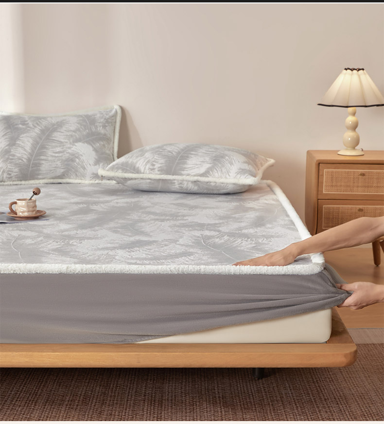• 91家纺网 家纺一手货源 找家纺 吾秀家居 2025新款高克重雕花牛奶绒单床笠床笠单件 寒梅
