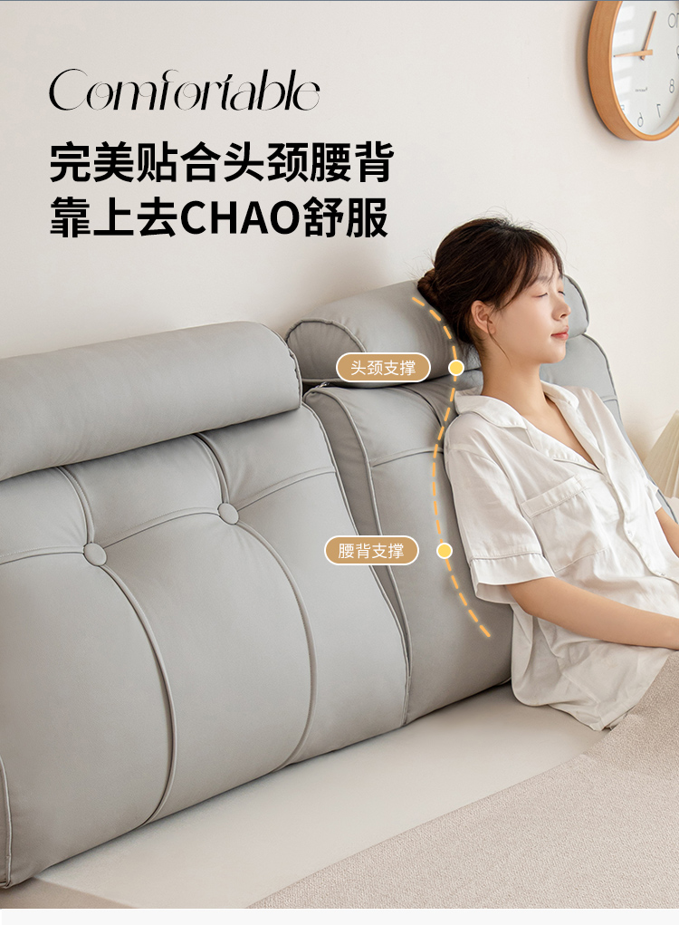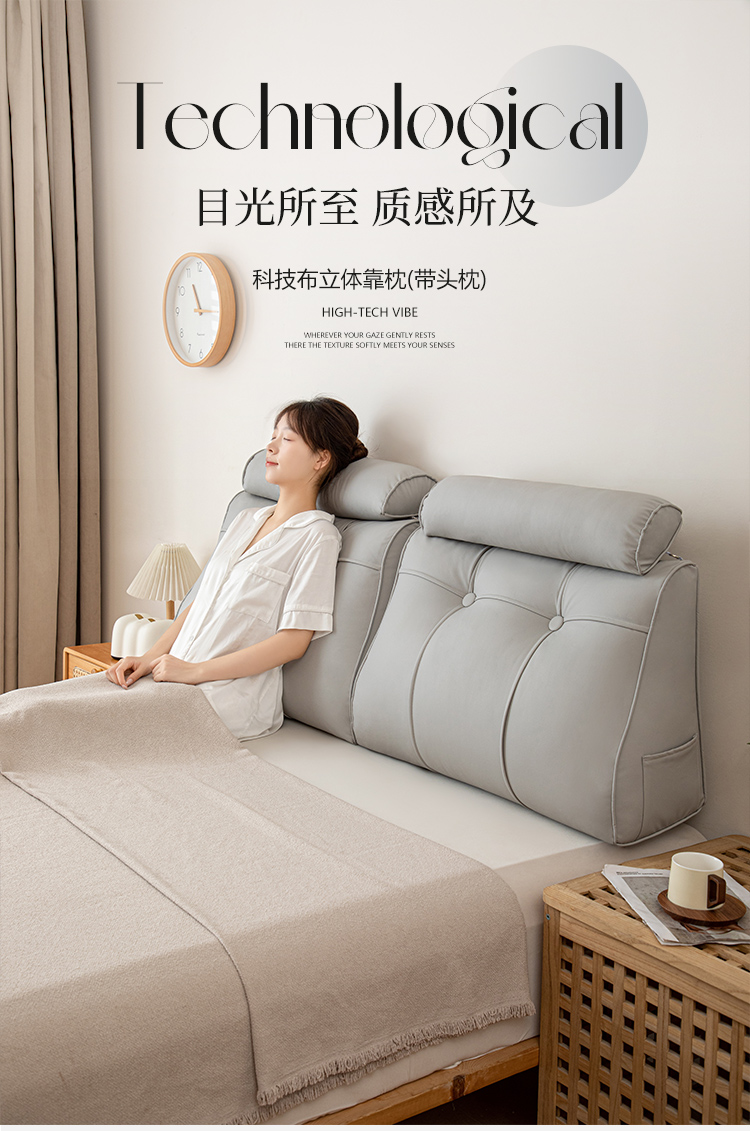 商品名称:(总)沐沐家纺 2026新款简约科技布立体靠枕带头枕