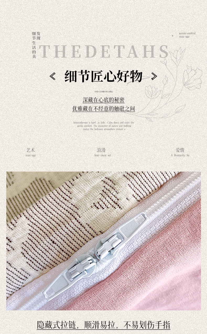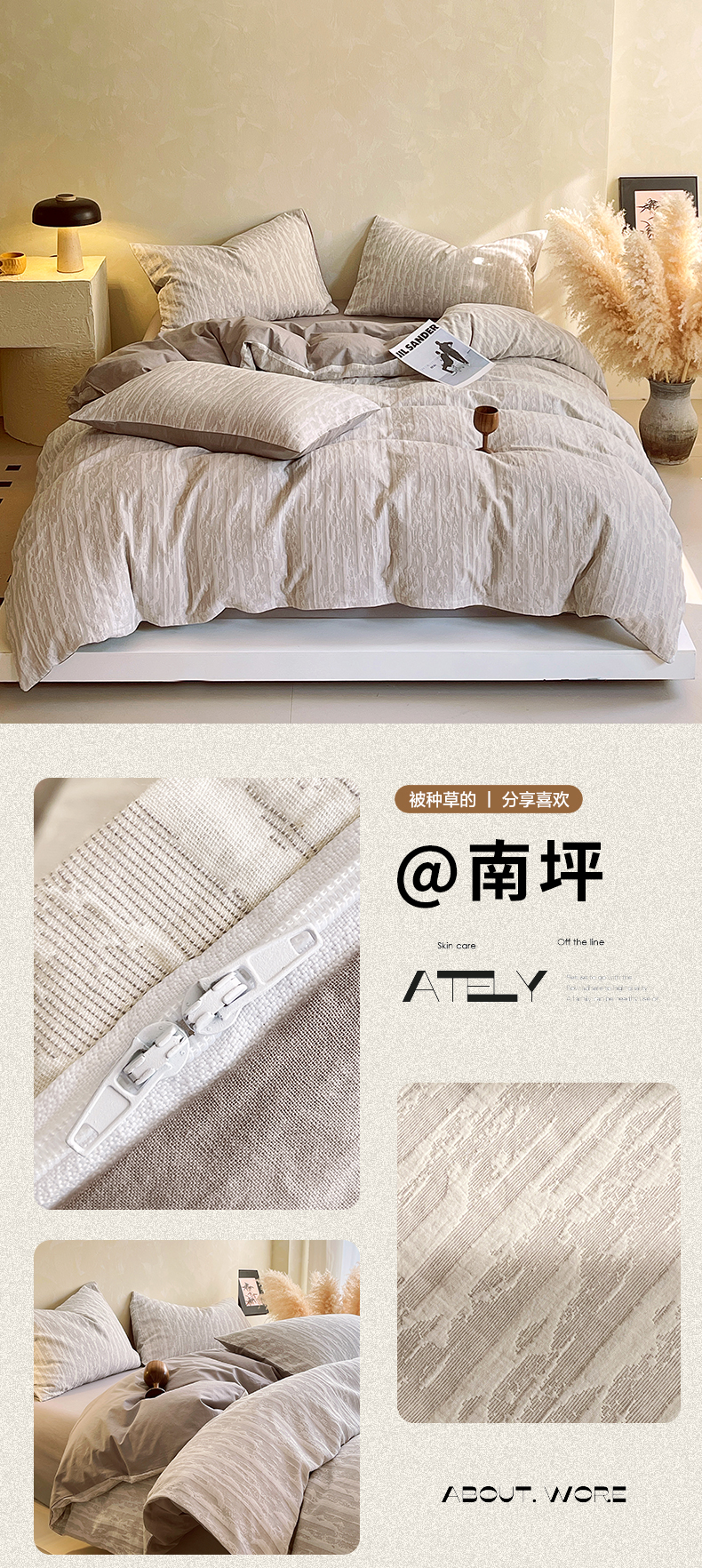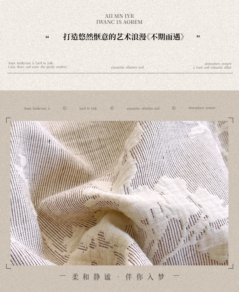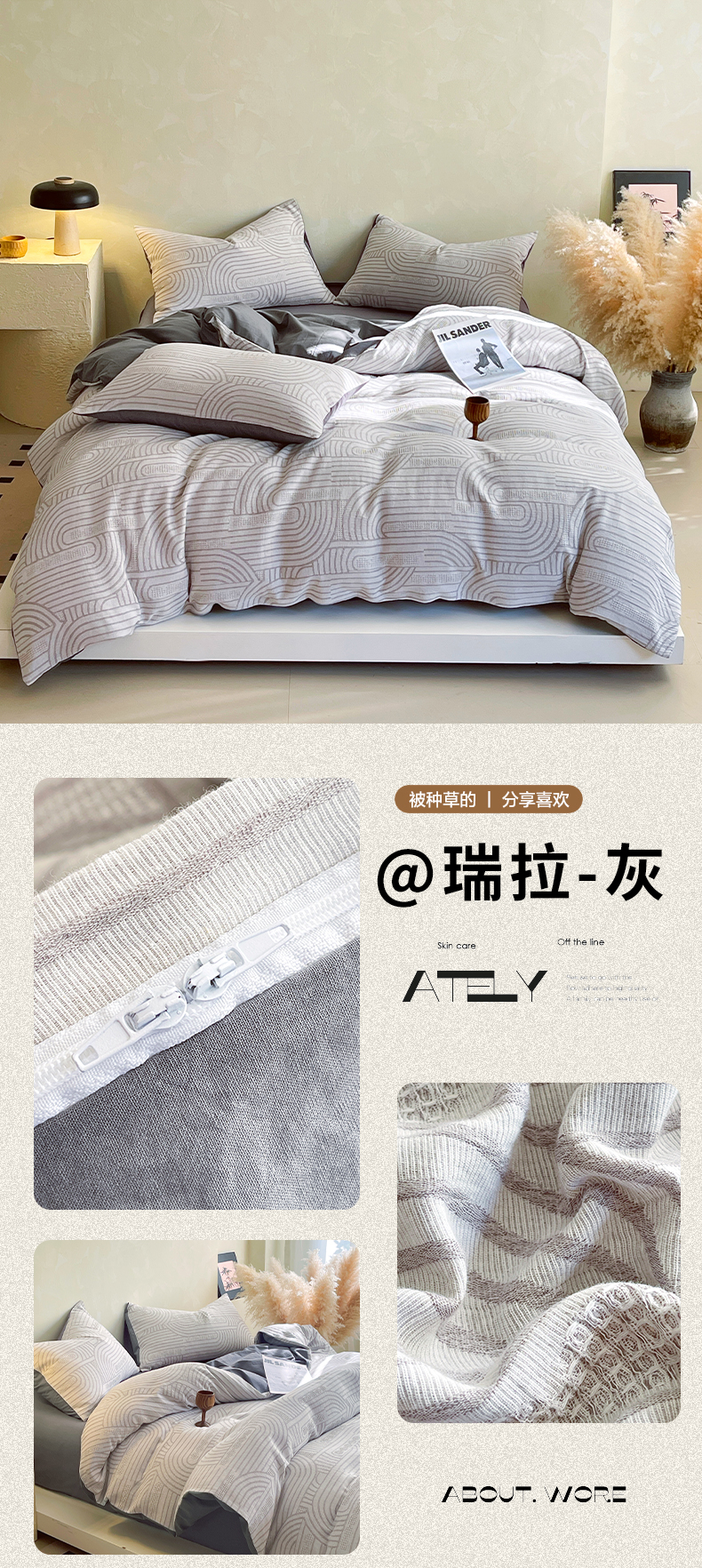 商品名称:春皖家纺 2026新款A类全棉三层纱AB版简约四件套-风格二 花笺