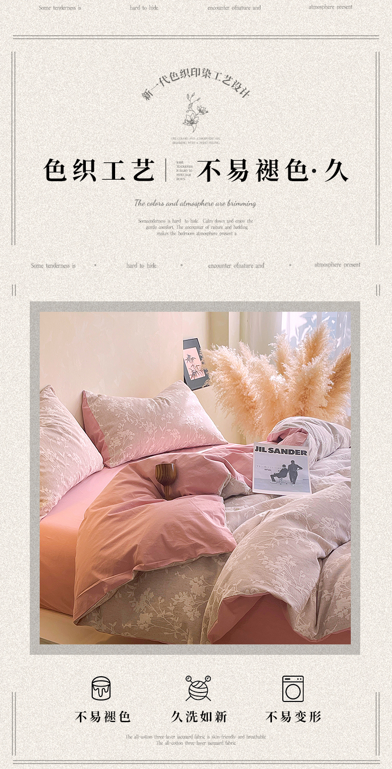 春皖家纺 2026新款A类全棉三层纱AB版简约四件套-风格二 花笺