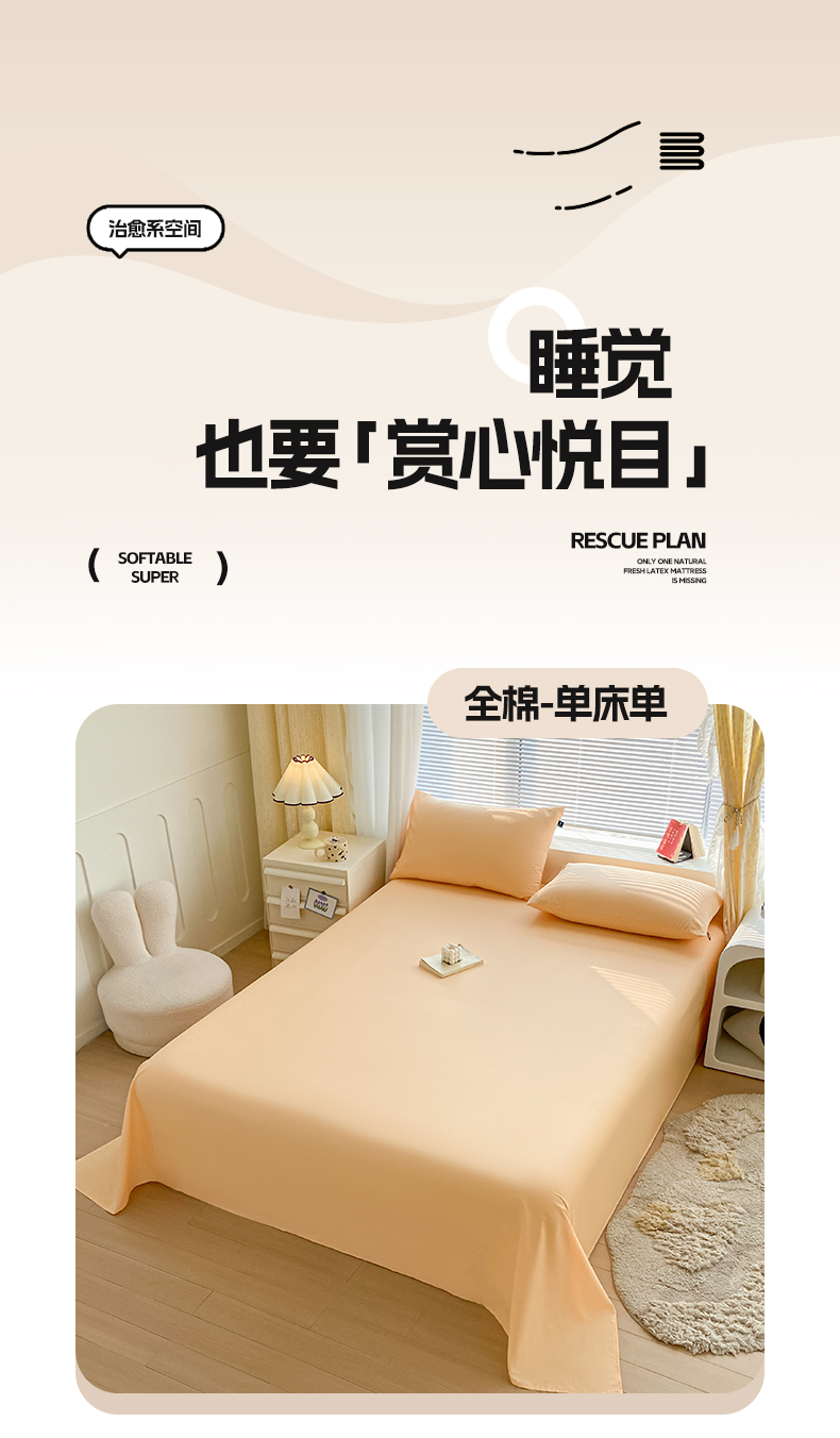 涵宸家纺 2026新款全棉纯色单床单-米兰 床单-浅黄