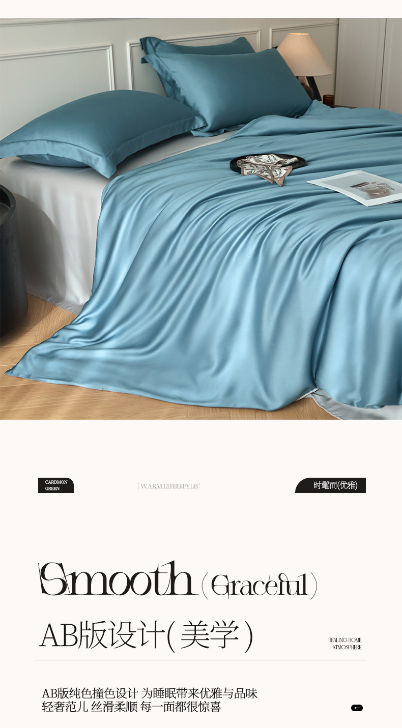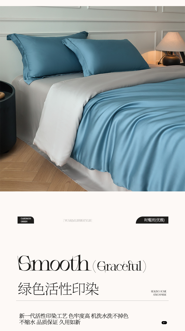 涵宸家纺 2026新款纯色天丝棉单被套-场景一 星耀兰+时尚灰