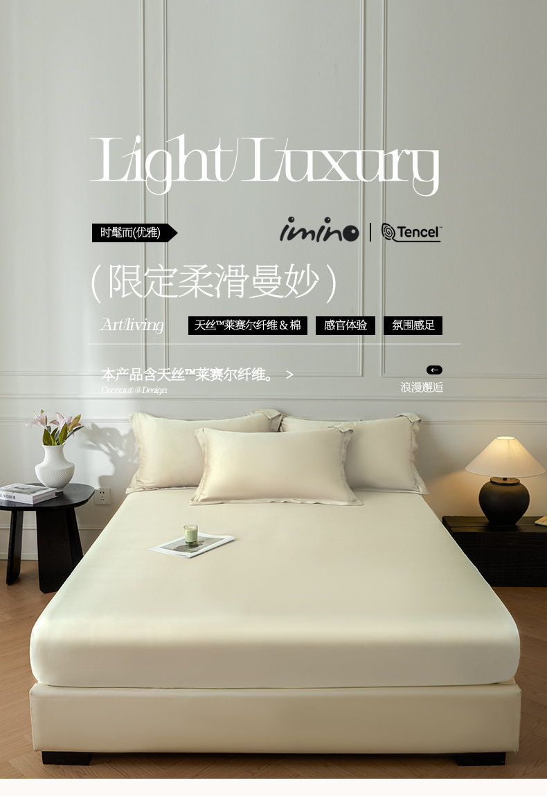 涵宸家纺 2026新款纯色天丝棉单床笠-场景一 床笠-象牙白