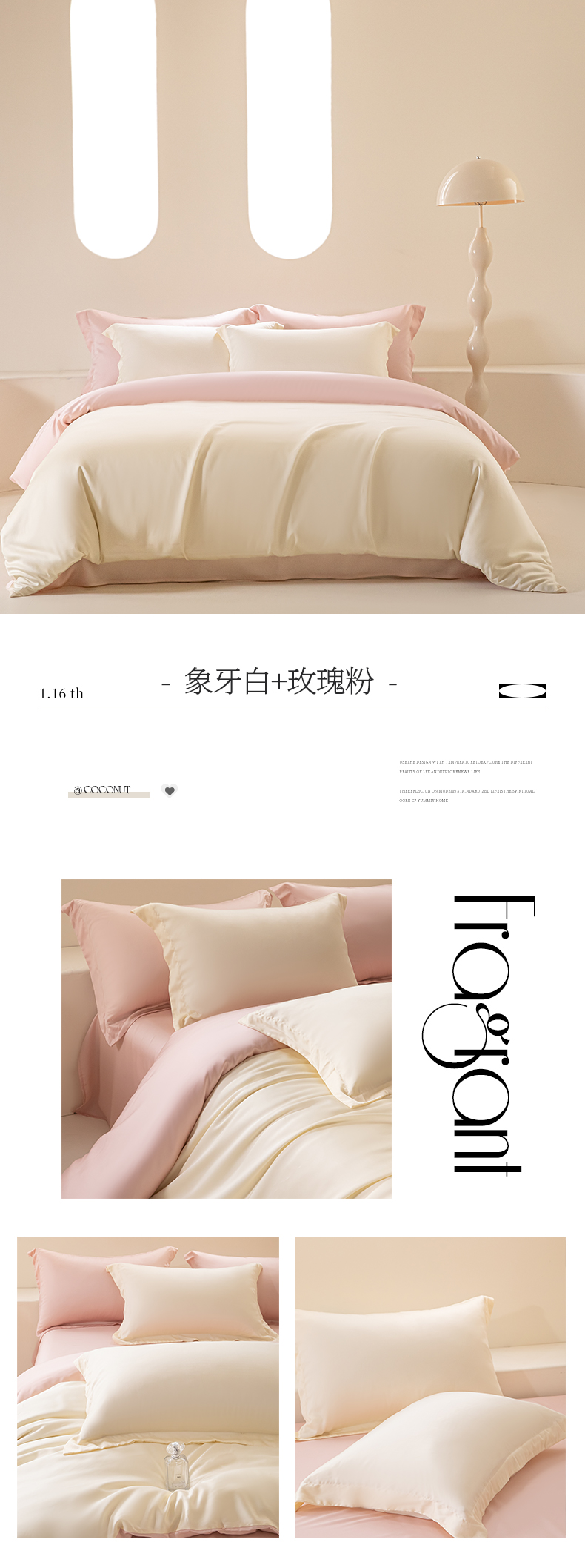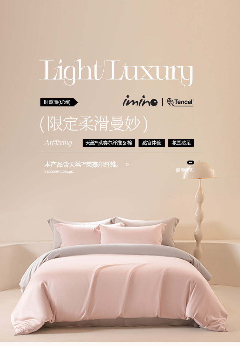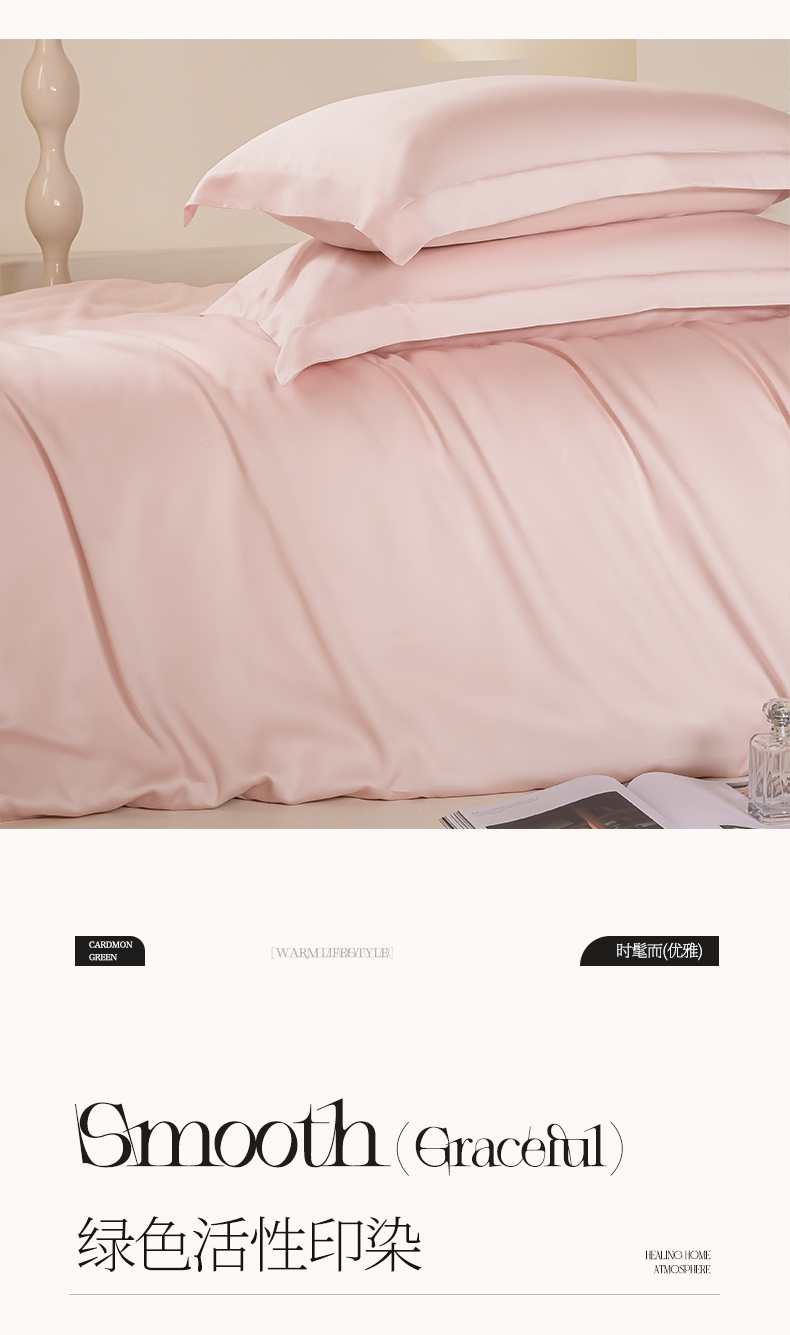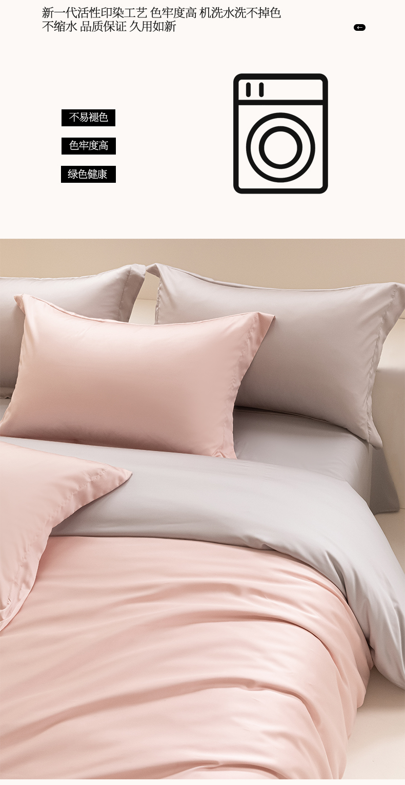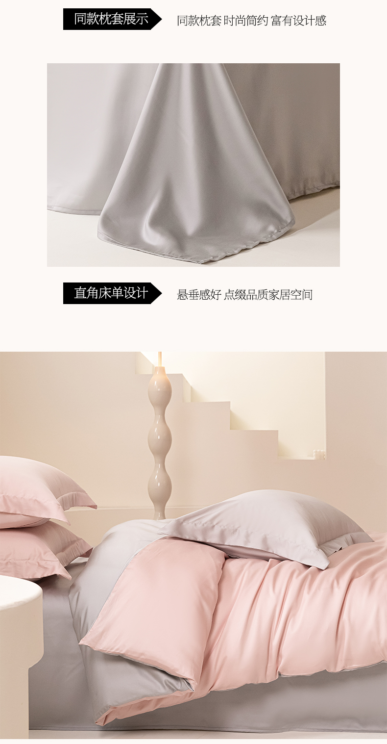 商品名称:涵宸家纺 2026新款纯色天丝棉单被套-场景二 玫瑰粉+时尚灰