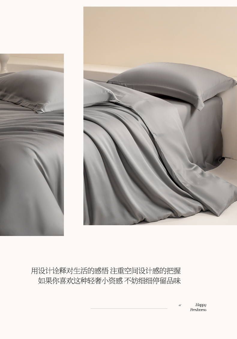 涵宸家纺 2026新款纯色天丝棉单被套-场景二 星夜灰