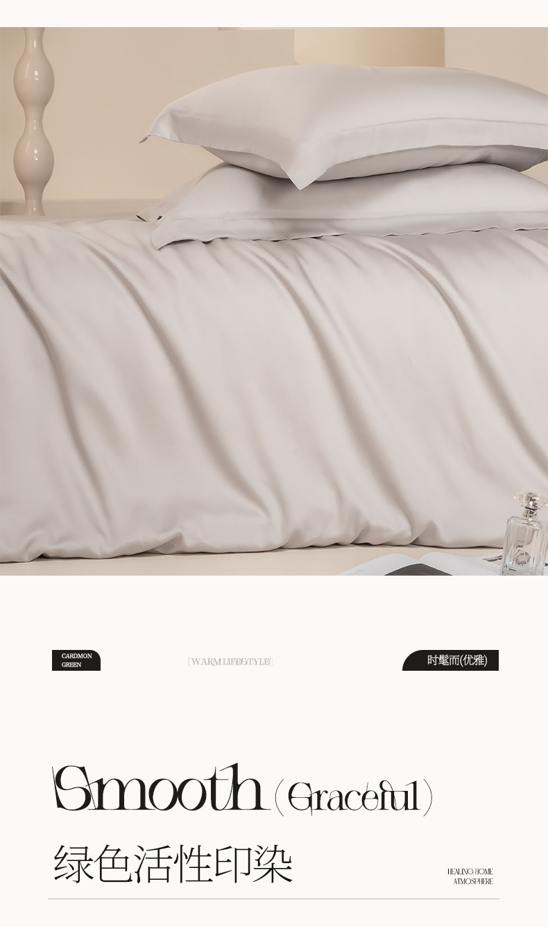 涵宸家纺 2026新款纯色天丝棉四件套-场景二 时尚灰+玫瑰粉