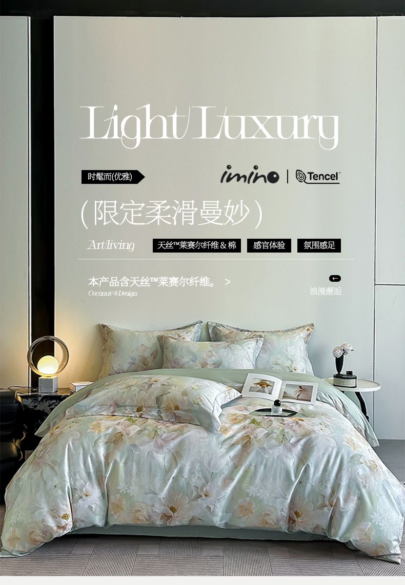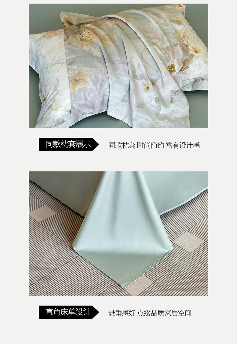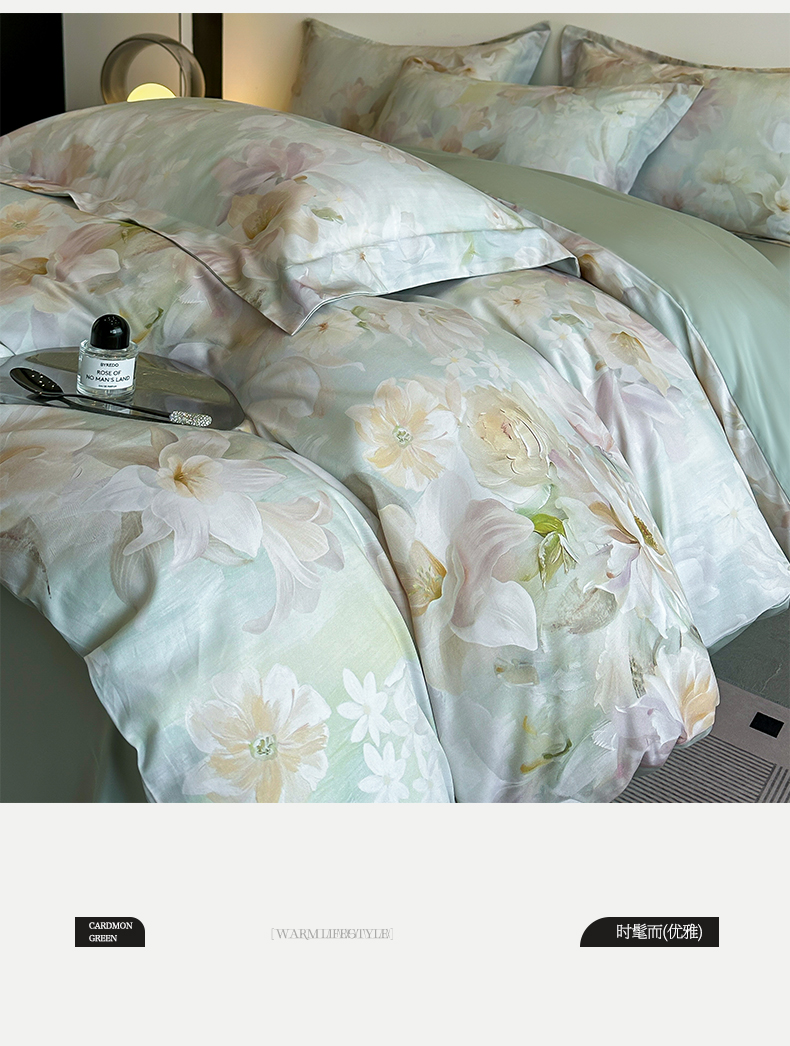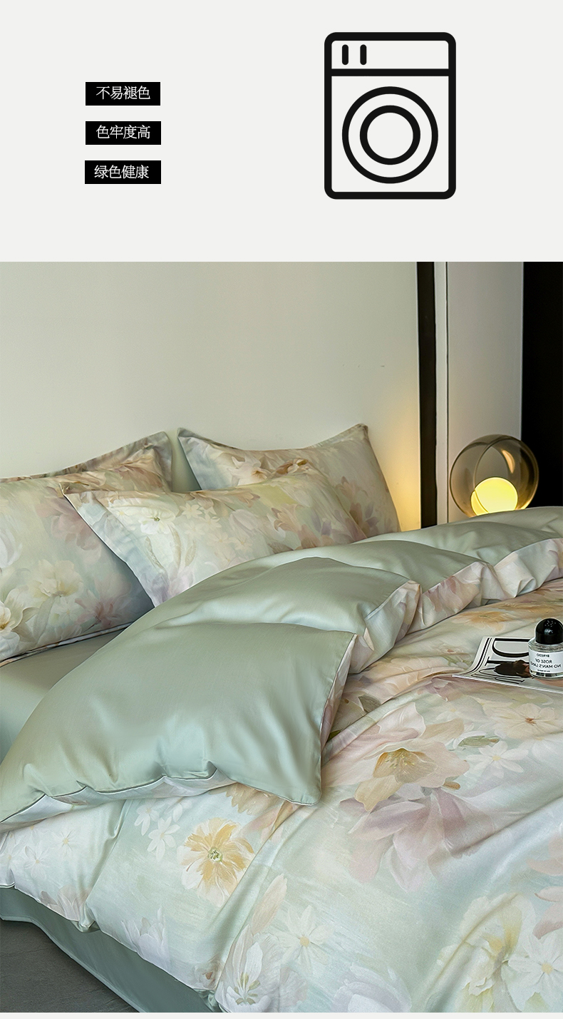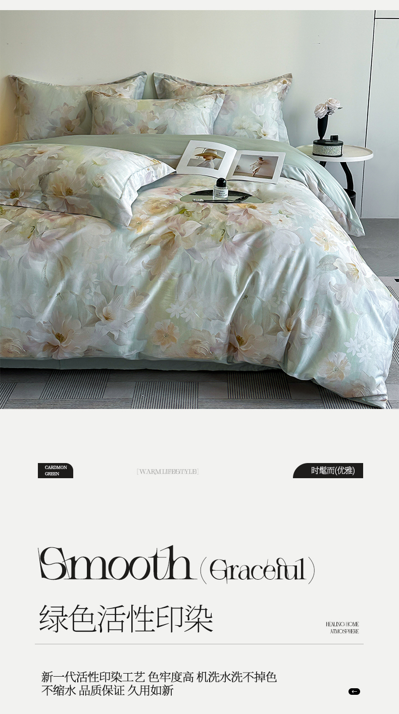 涵宸家纺 2026新款天丝棉数码印花四件套 恬觅-绿