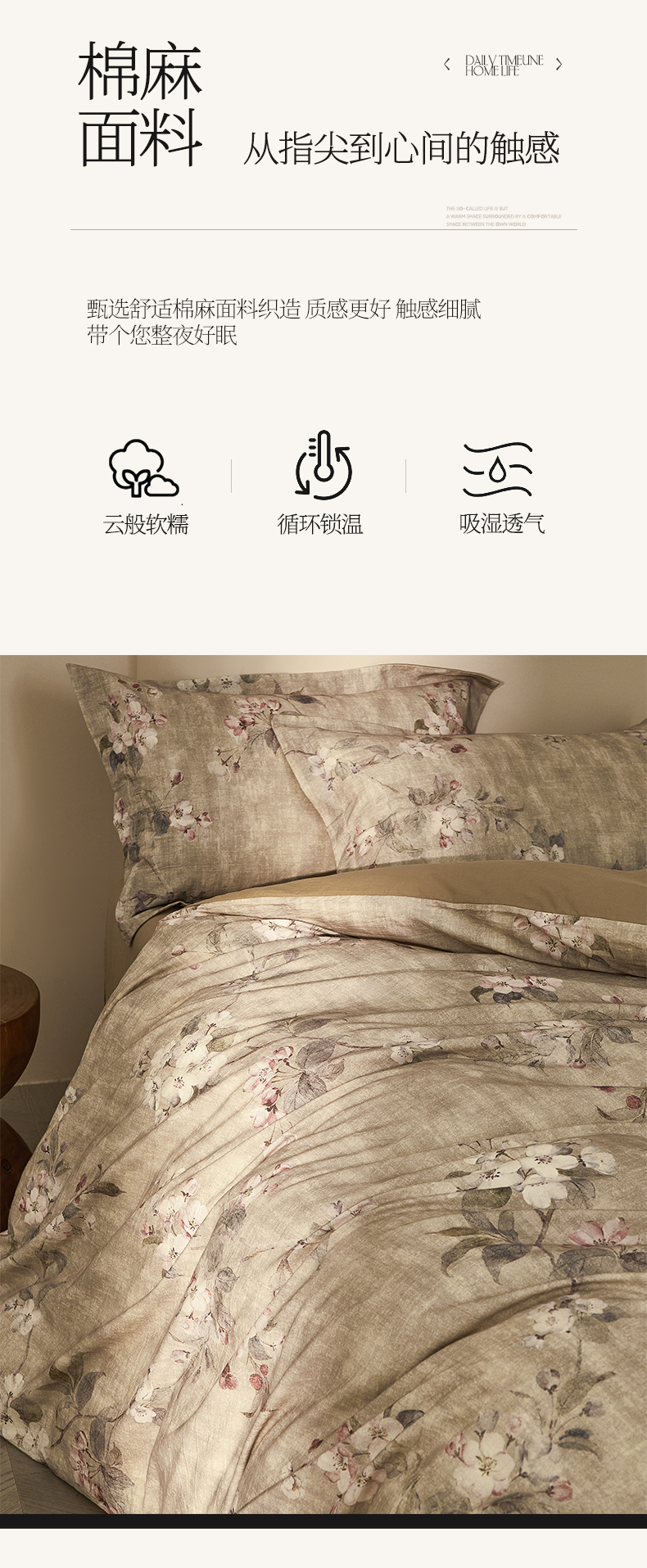 商品名称:涵宸家纺 2026新款棉麻数码印花四件套 叶之韵-青