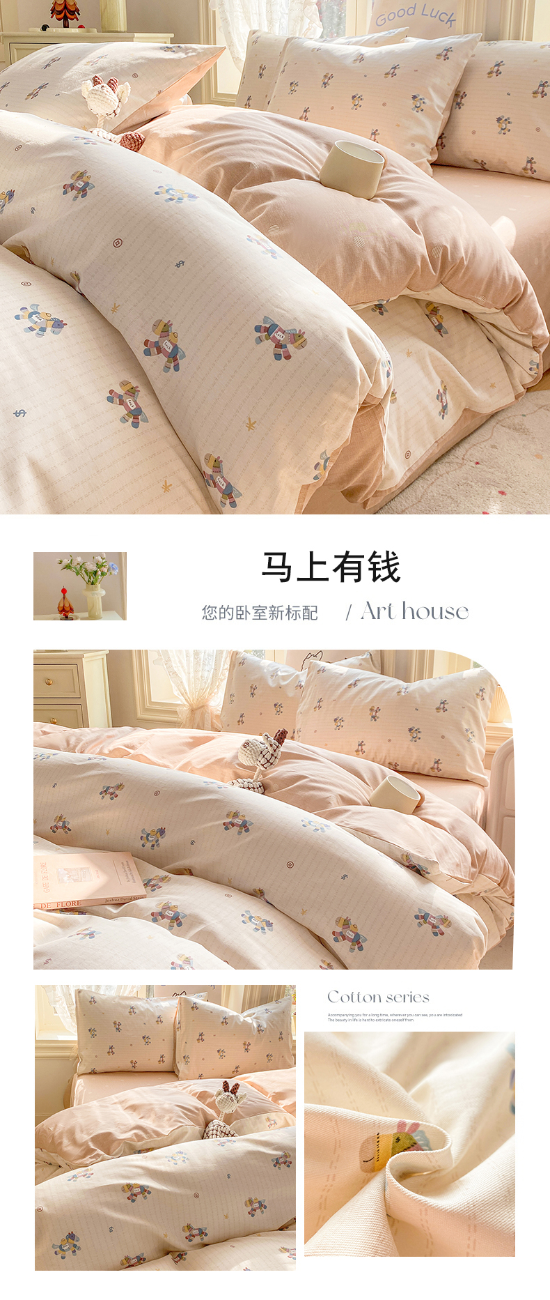 (总)黑马家居 2025新款13070全棉田园小清新四件套系列,花漾,凯蒂猫,机器人,晚安小熊,花间梦,柠语,芳华,童趣,锦绣,邂逅,彩虹小马,小熊莉娜,海洋之星,花开似锦