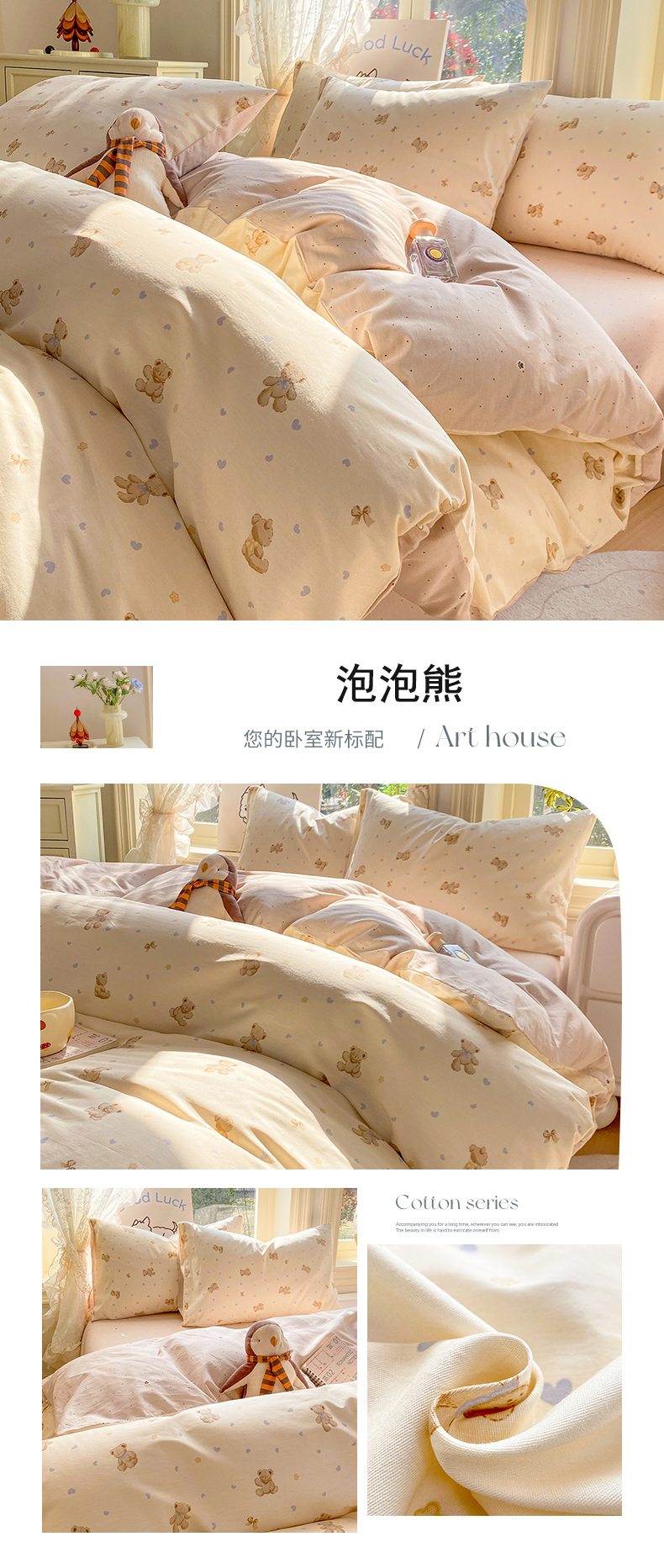 (总)黑马家居 2023新款喷气全棉斜纹四件套,爱意绵绵,贝尔熊,春意,六叶草,梦游仙境,蜜桔兔,七色花语,油画小兔,月桂幽香