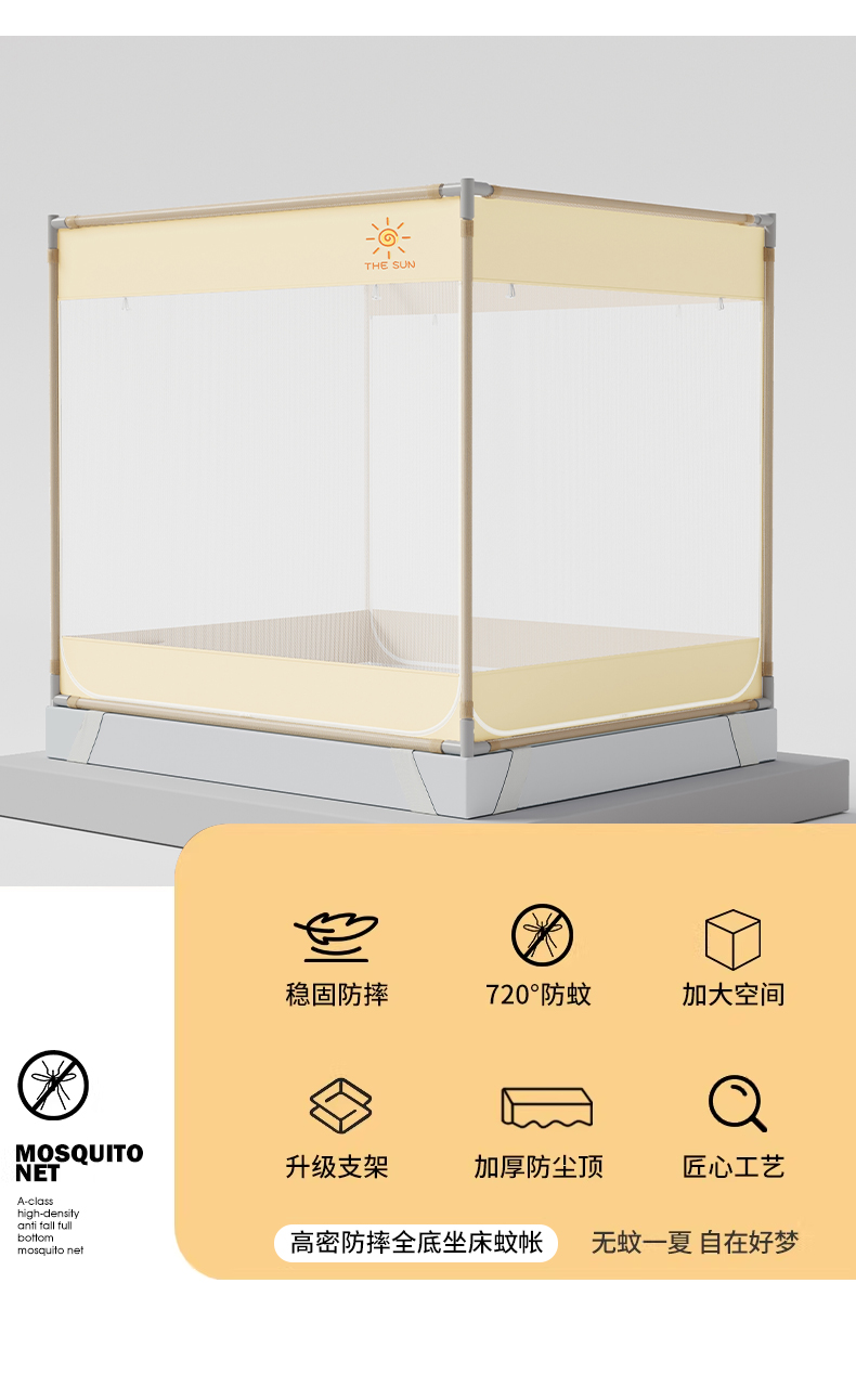 当前位置: 91家纺网 > 商品网购 > 床上用品 > 蚊帐 > 坐床式蚊帐 > 初心家纺 2026新款坐床外穿杆全底防摔蚊帐 灰-字母