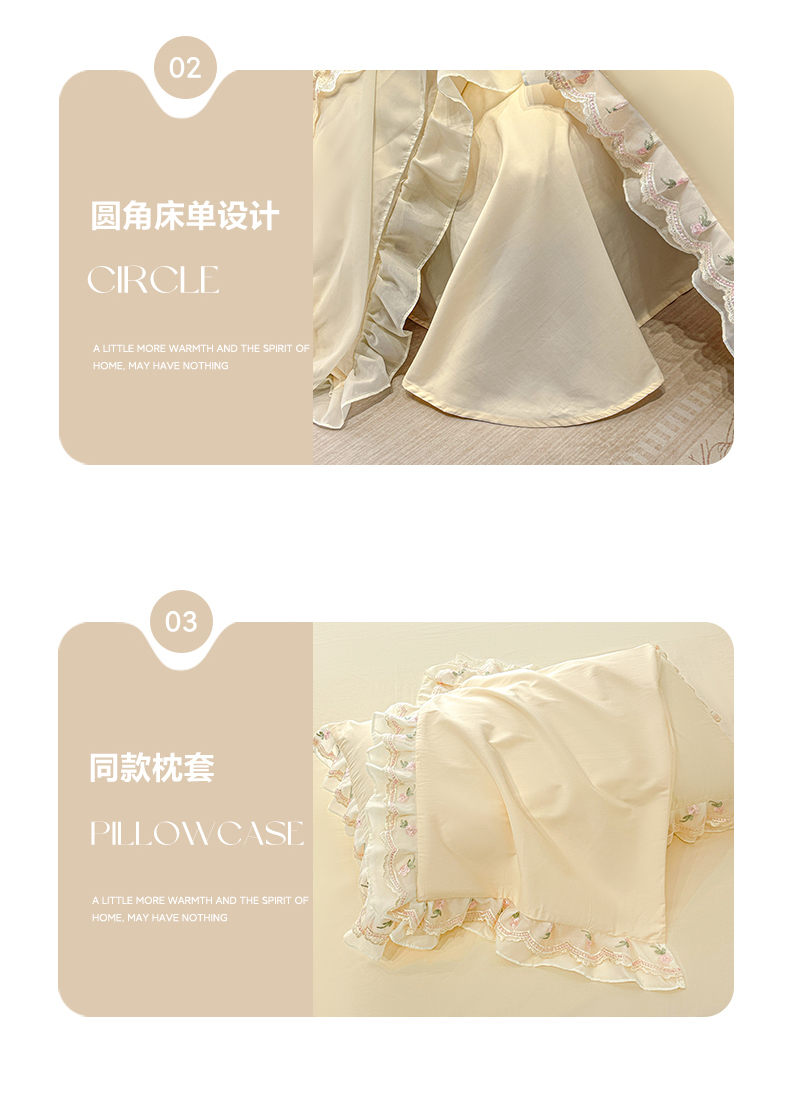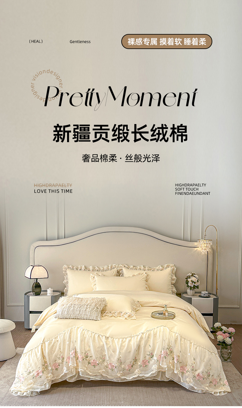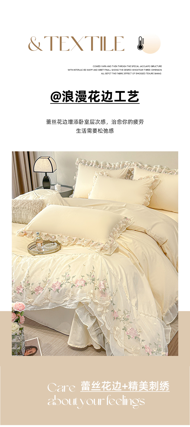 商品名称:绒掌柜家纺(品质焕新) 2026新品100S长绒棉蕾丝花边精密刺绣四件套-巴黎仙子系列-礼盒装 奶昔白