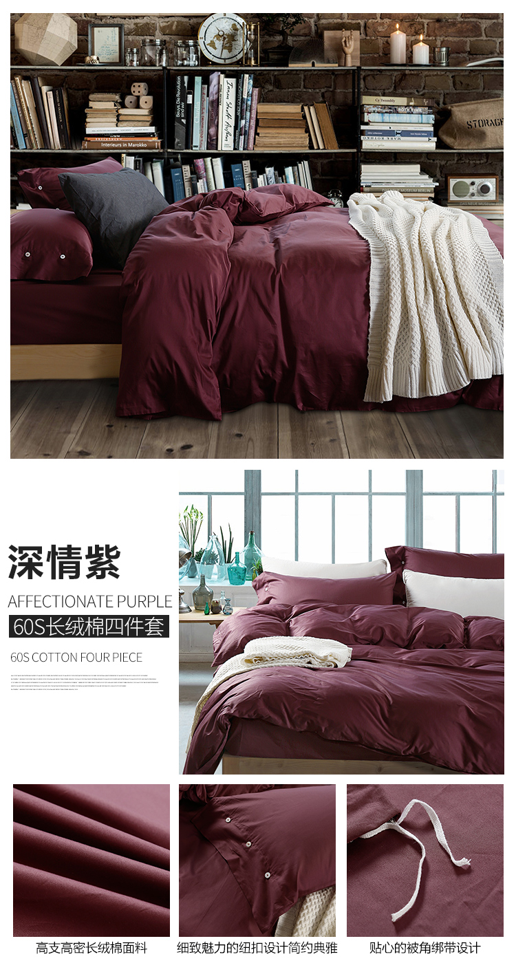 当前位置: 91家纺网 > 商品网购 > 床品套件 > 四件套 > 长绒棉四件套 > 太古汇家居 60长绒棉(纯色)四件套 深情紫TGH006C