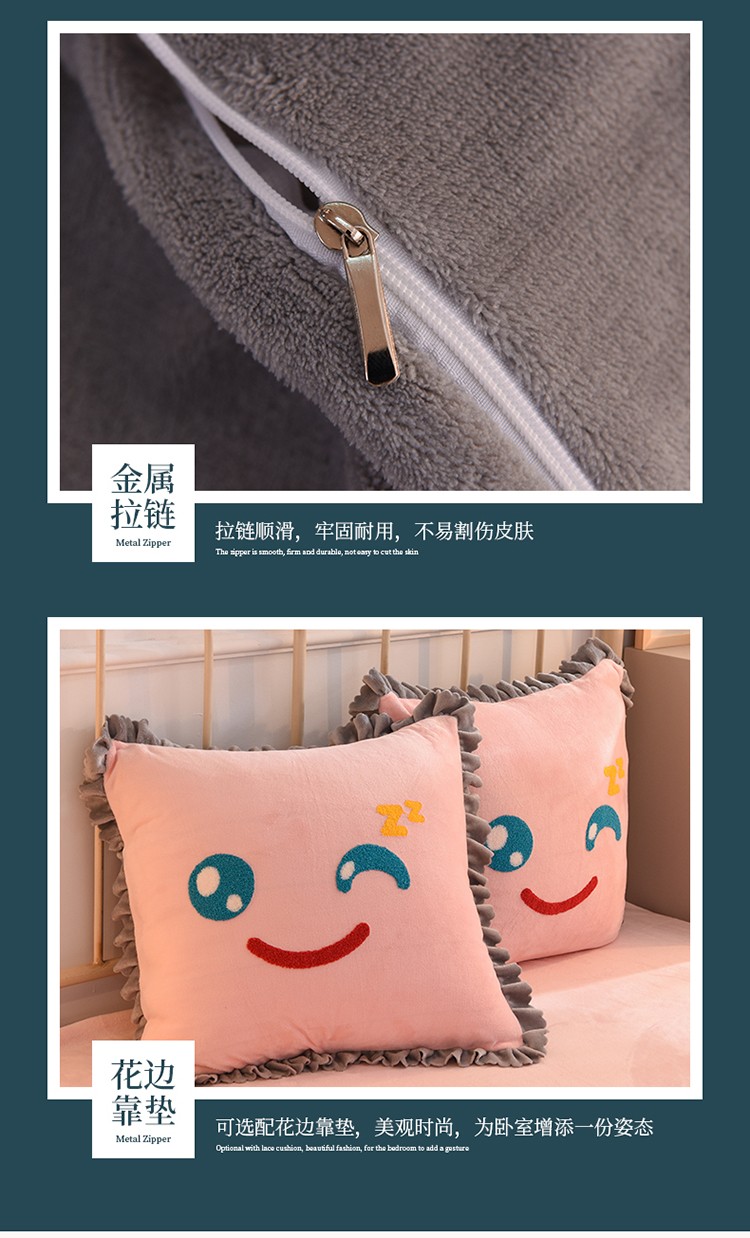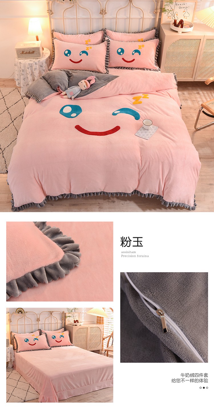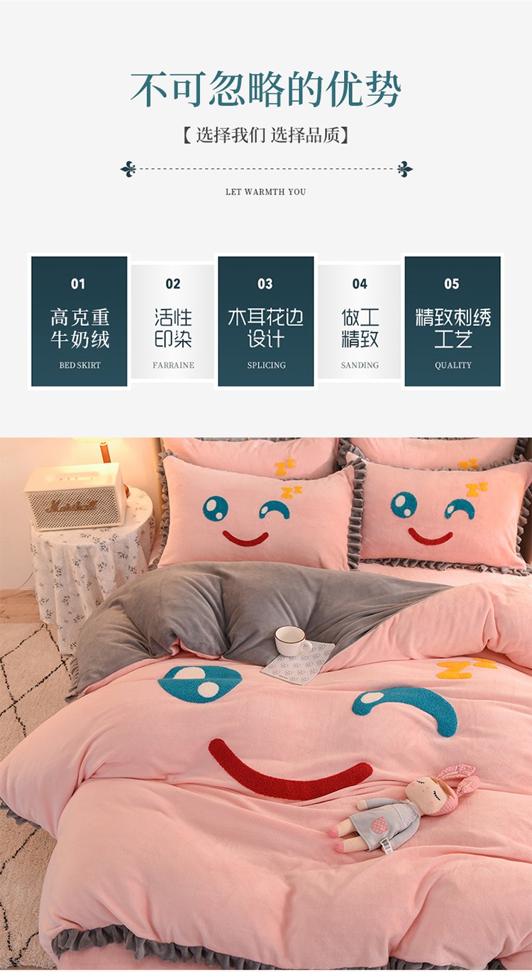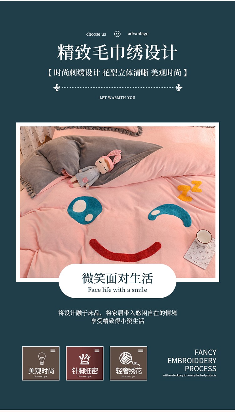 兴美佳家纺 新款牛奶绒花边毛巾绣四件套-你的微笑 粉玉