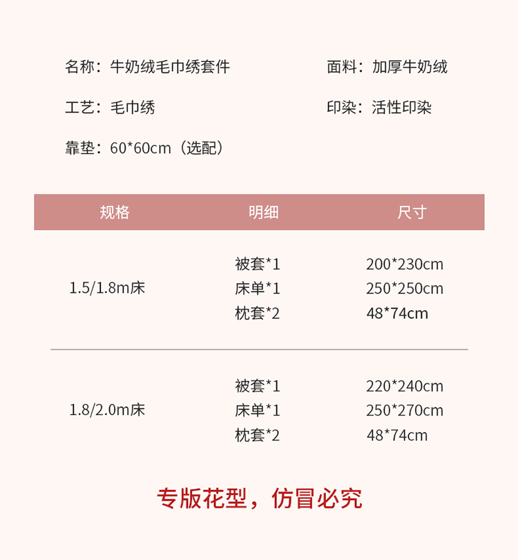 (总)兴美佳家纺 2023新款高克重兔毛绒雕花手工盘花四件套,少女粉,玫瑰红,米黄,翡翠绿,芋紫,豆沙,雅灰,雪青