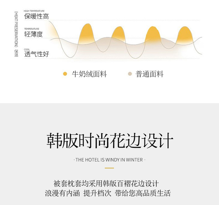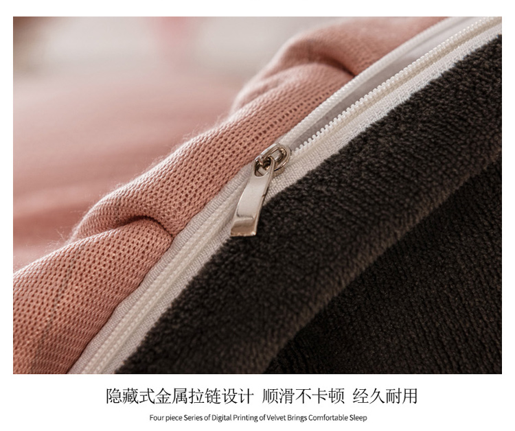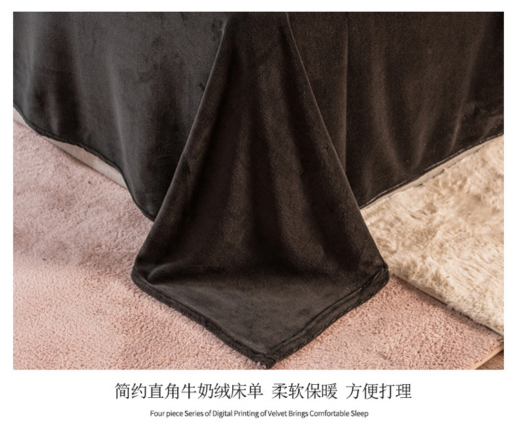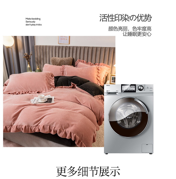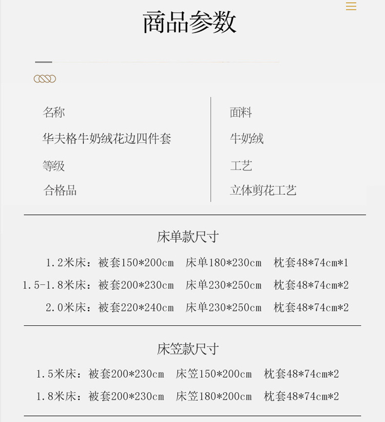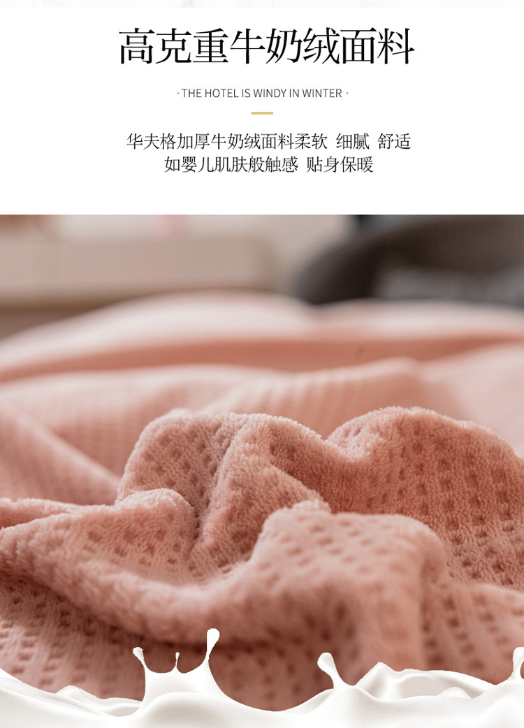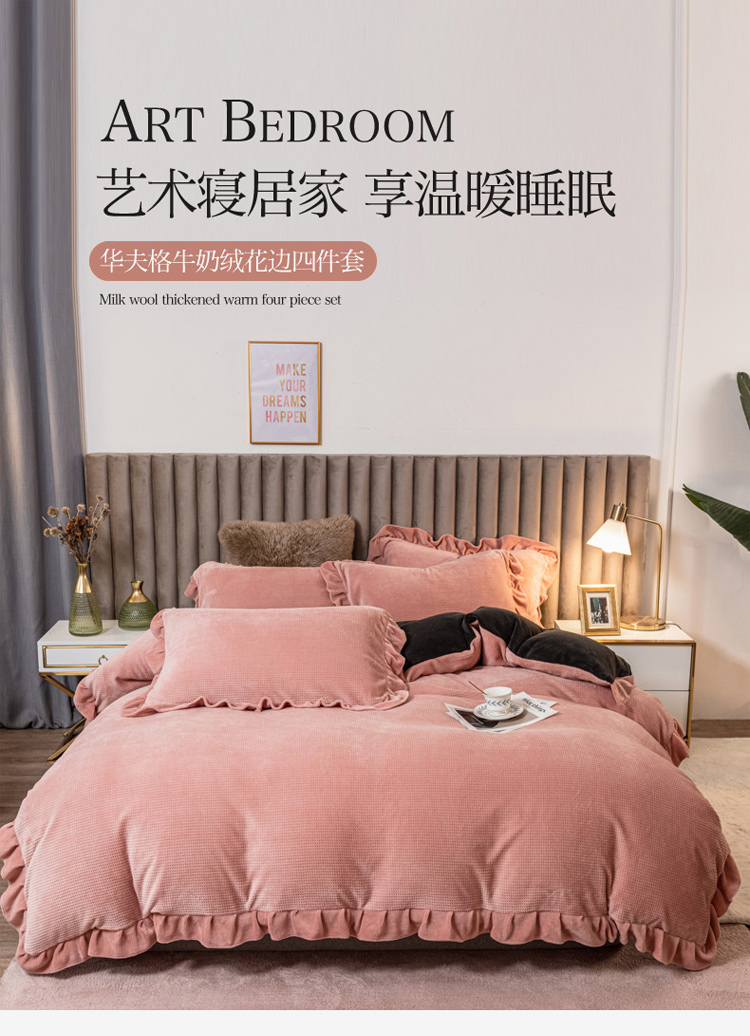 商品名称:印季 2024新款华夫格牛奶绒花边四件套 豆沙-灰