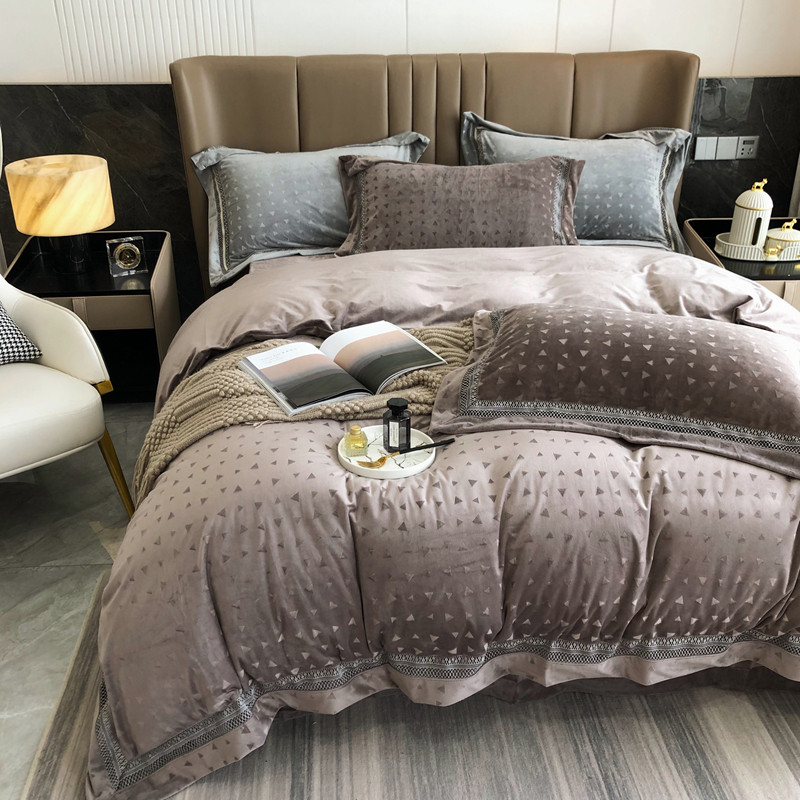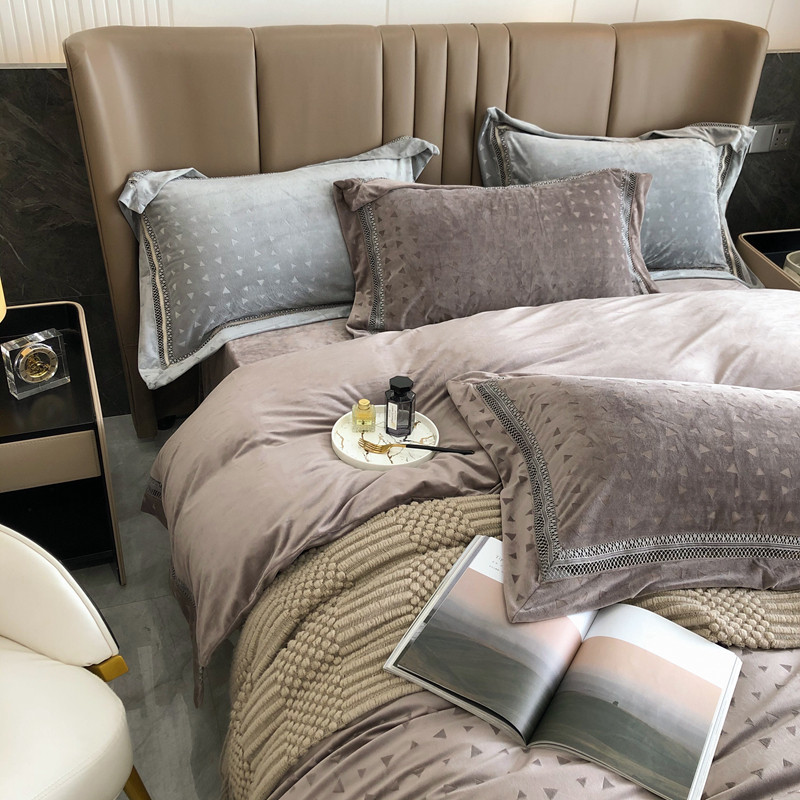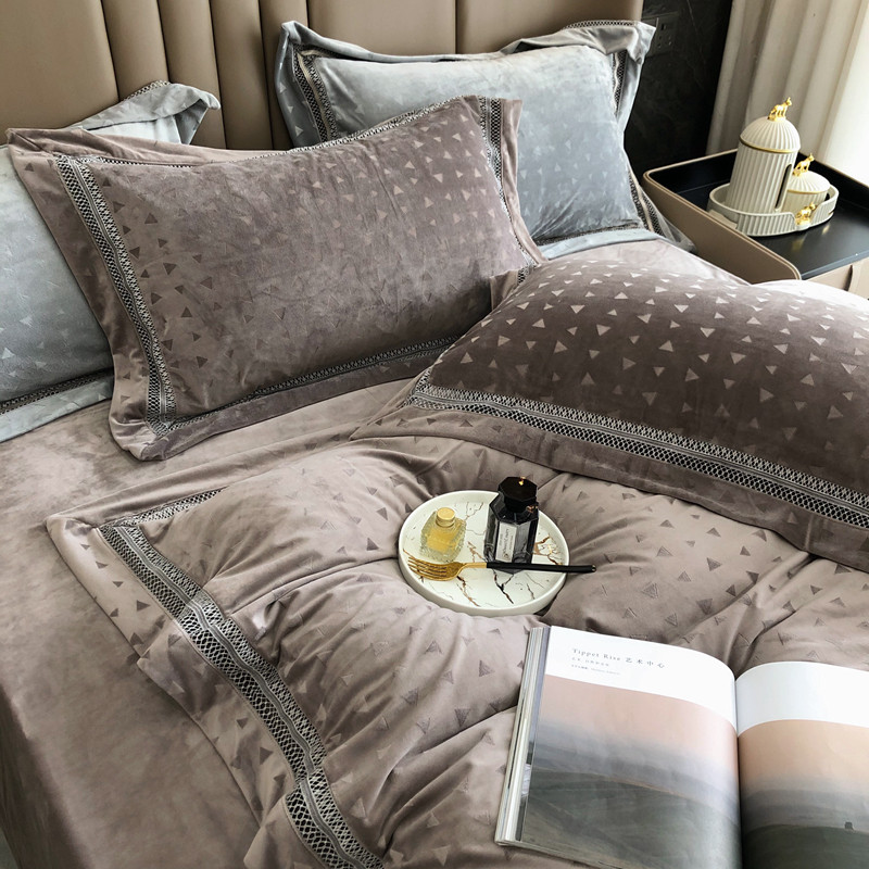 (总)榻尚家居 2025新款秋冬加厚绵阳绒牛奶绒四件套,绵阳绒灰色,绵阳绒蓝色,绵阳绒棕色