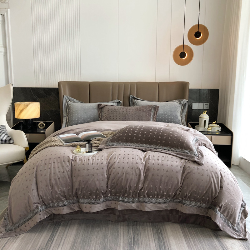 总榻尚家居 2023新款格瑞斯系列100贡缎长绒棉四件套工艺款四件套,格瑞斯紫,格瑞斯白,格瑞斯灰,格瑞斯蓝