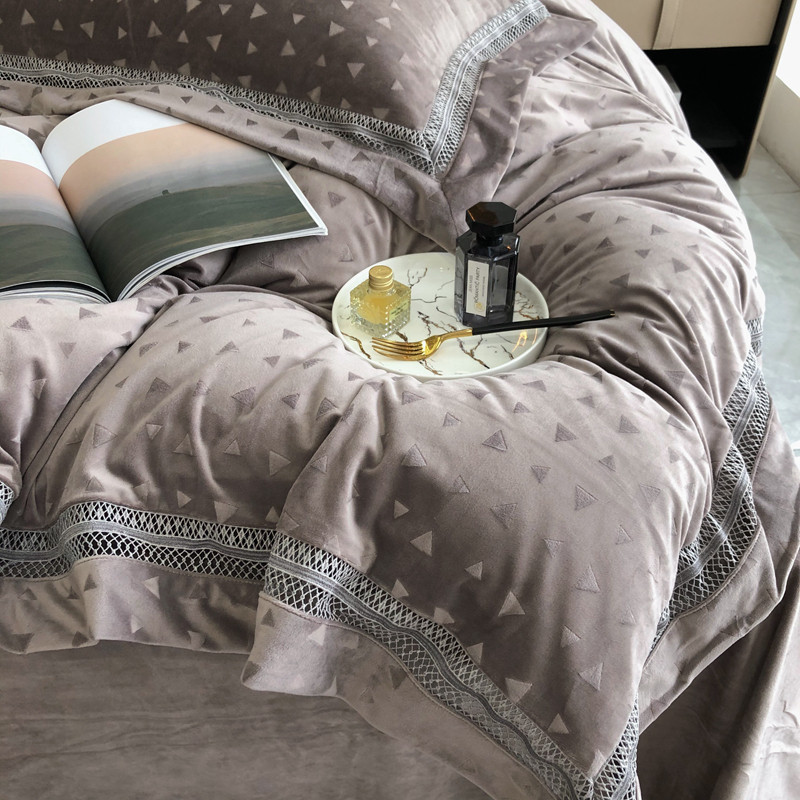 榻尚2023新款进口蕾丝缕空260克公主绒加厚牛奶绒秋冬款四件套,低调的华丽-粉玉,低调的华丽-海雾蓝,低调的华丽-奶茶棕,低调的华丽-象牙白