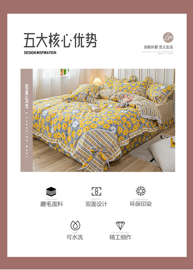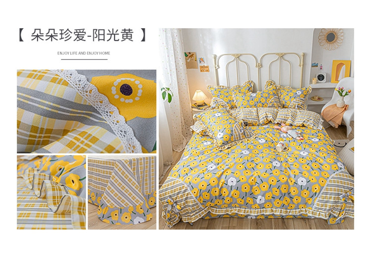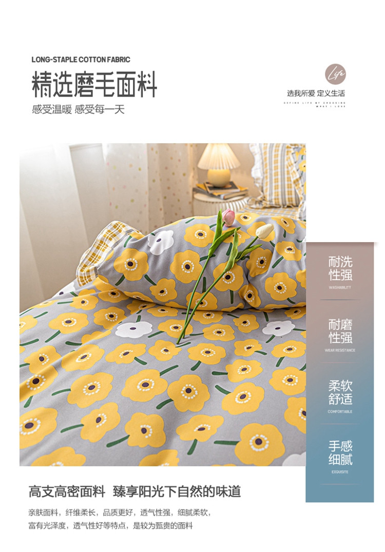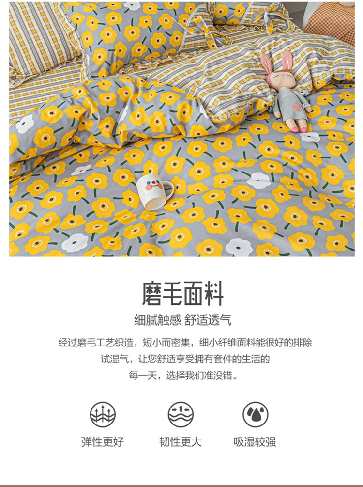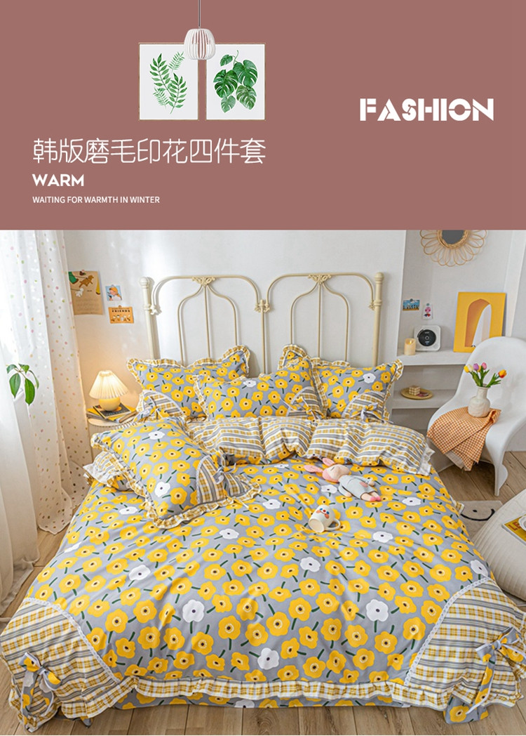商品名称:靓生活 2021新款韩版磨毛四件套 朵朵珍爱-阳光黄