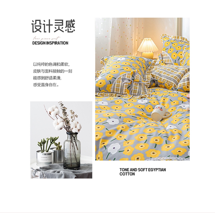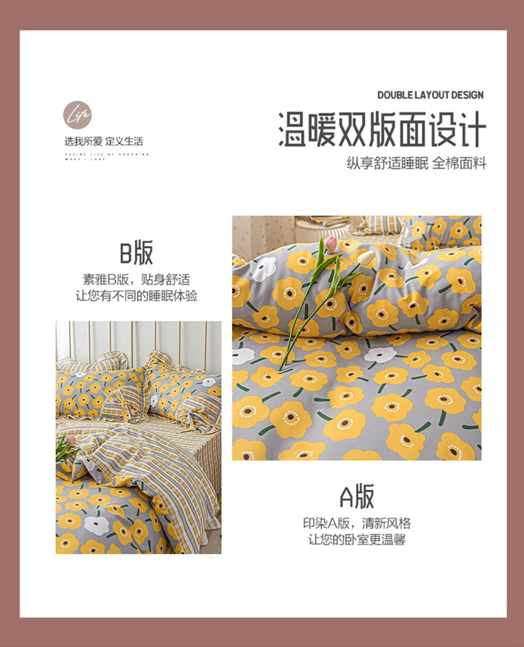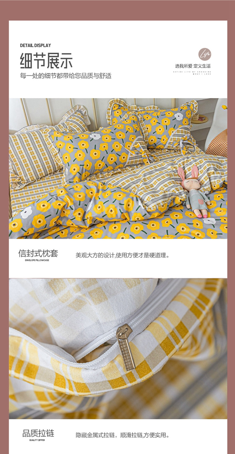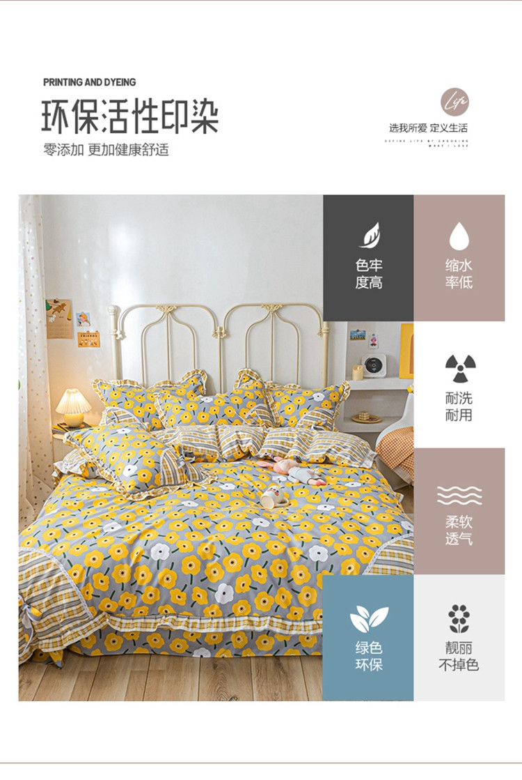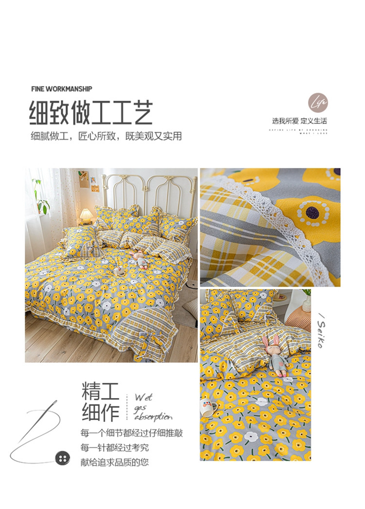 商品名称:靓生活 2021新款韩版磨毛四件套 朵朵珍爱-阳光黄