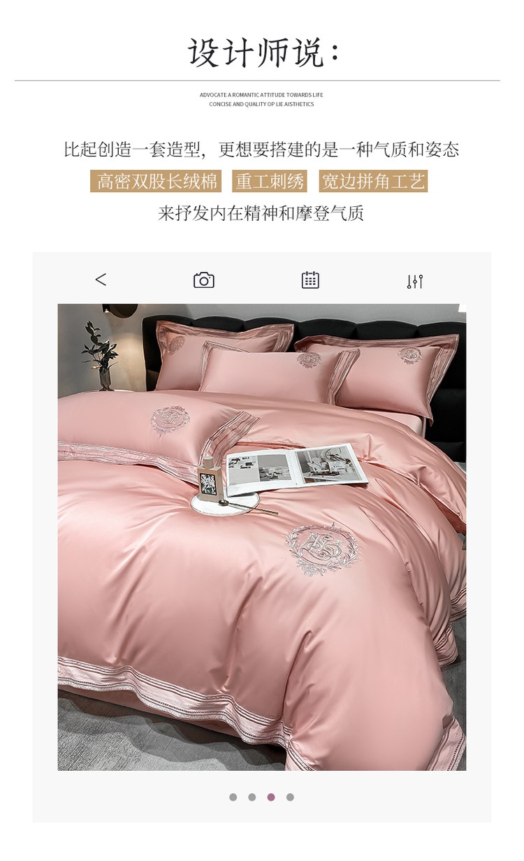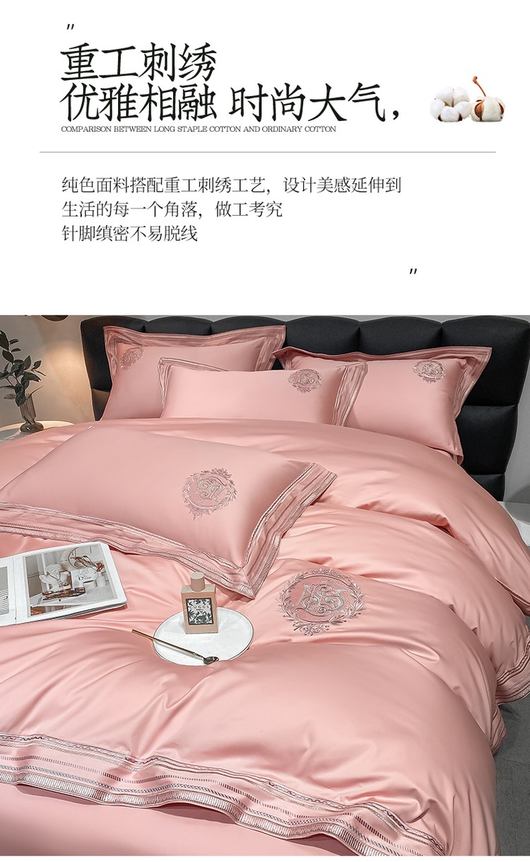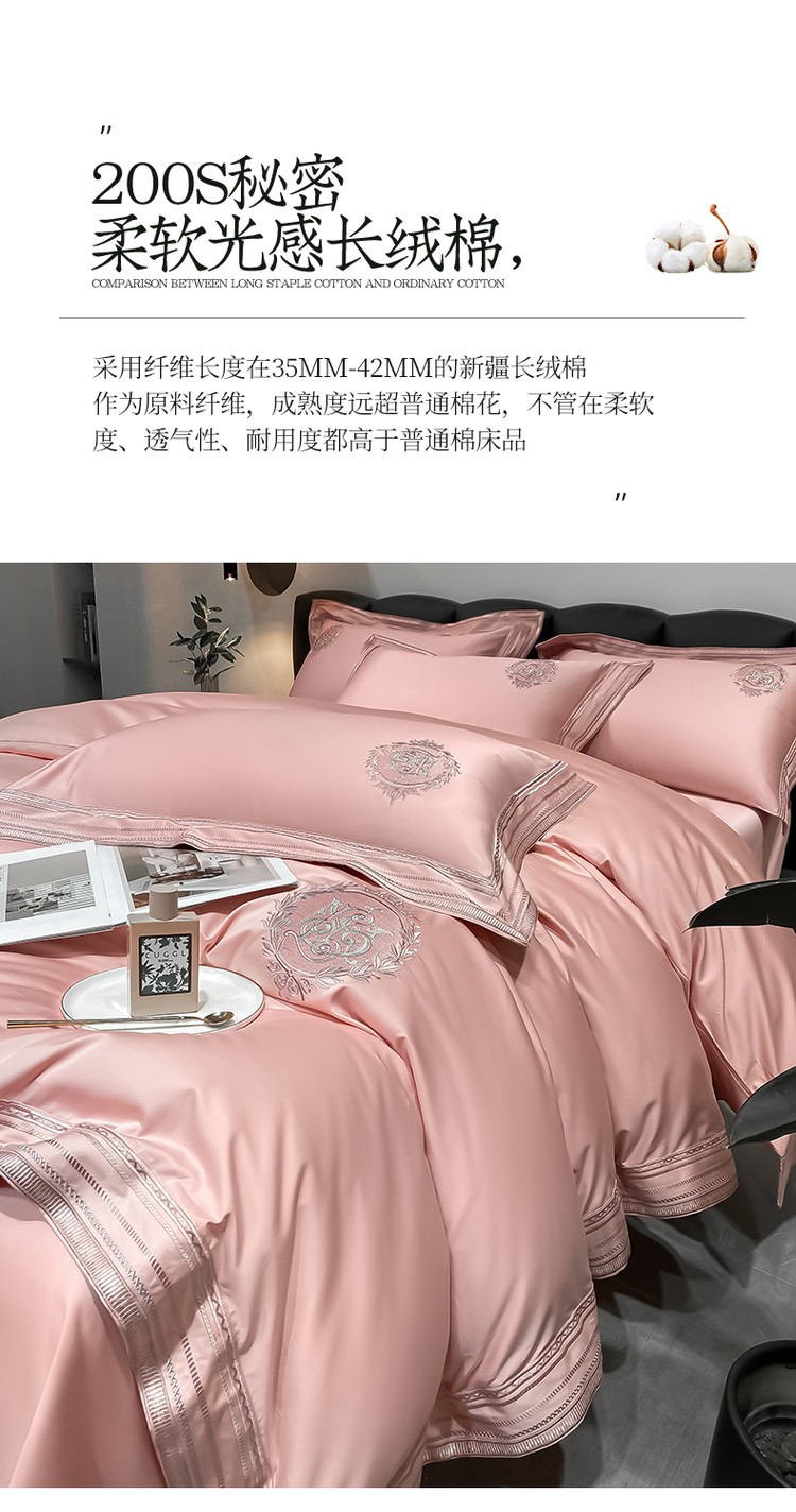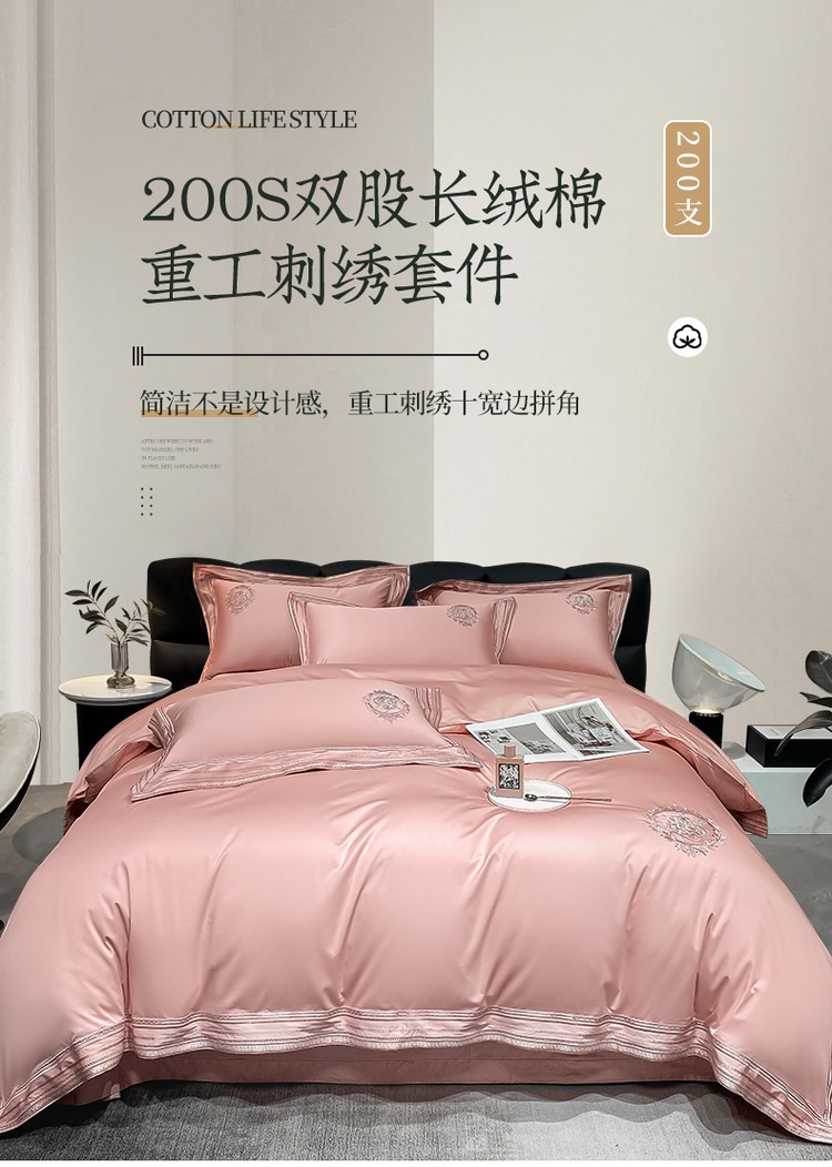200支新款长绒棉宽边刺绣四件套