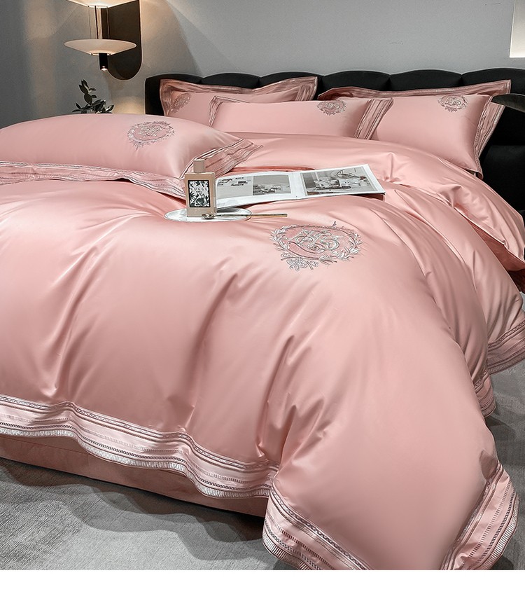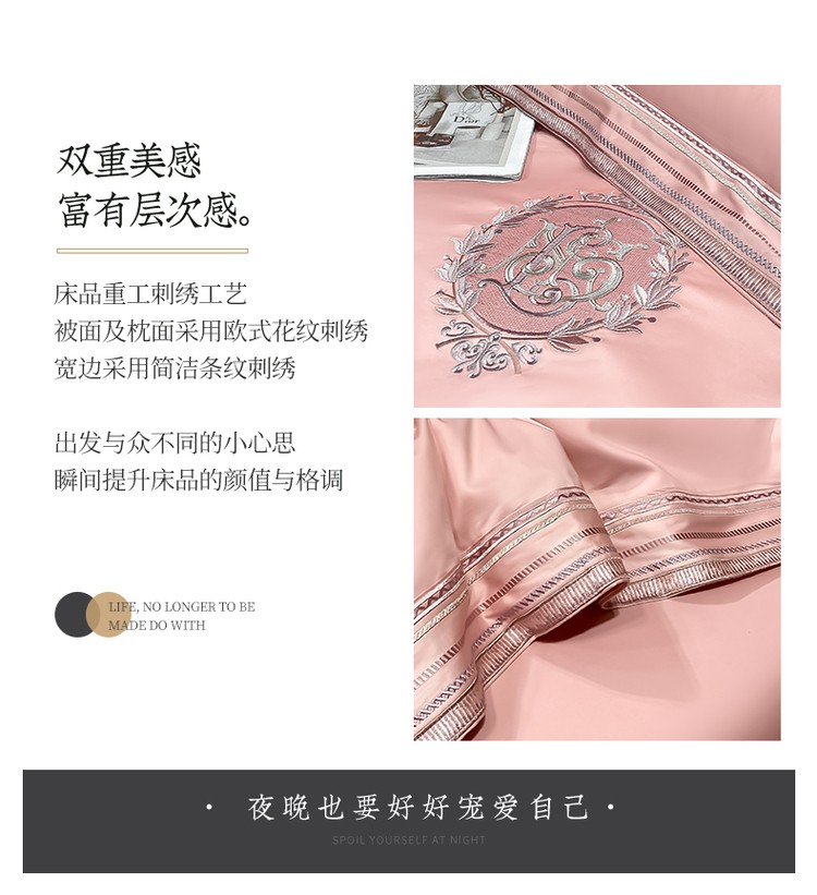 柔觉家纺 天丝刺绣贡缎提花全棉四件套,卡曼时尚-粉紫