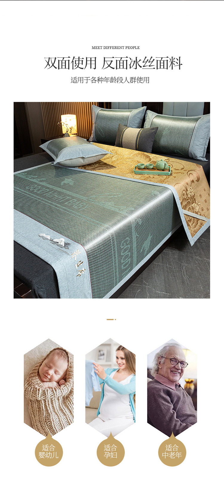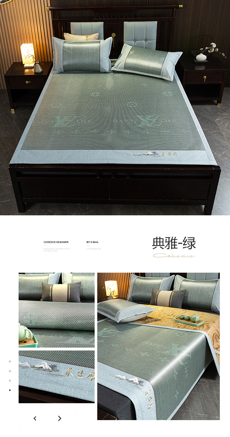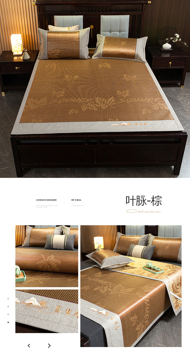 (总)莱轩席业 2023新款提花刺绣双面冰藤席