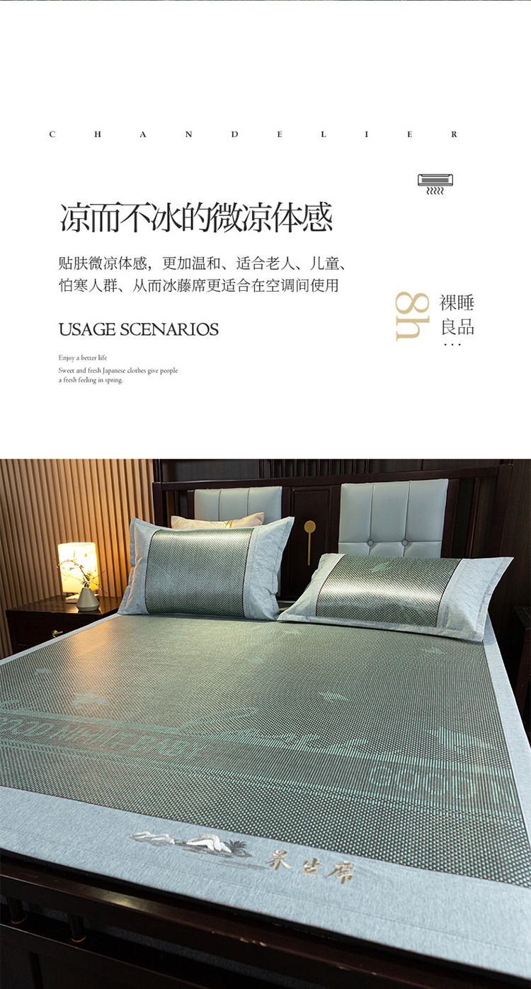 商品名称:(总)莱轩席业 2023新款提花刺绣双面冰藤席