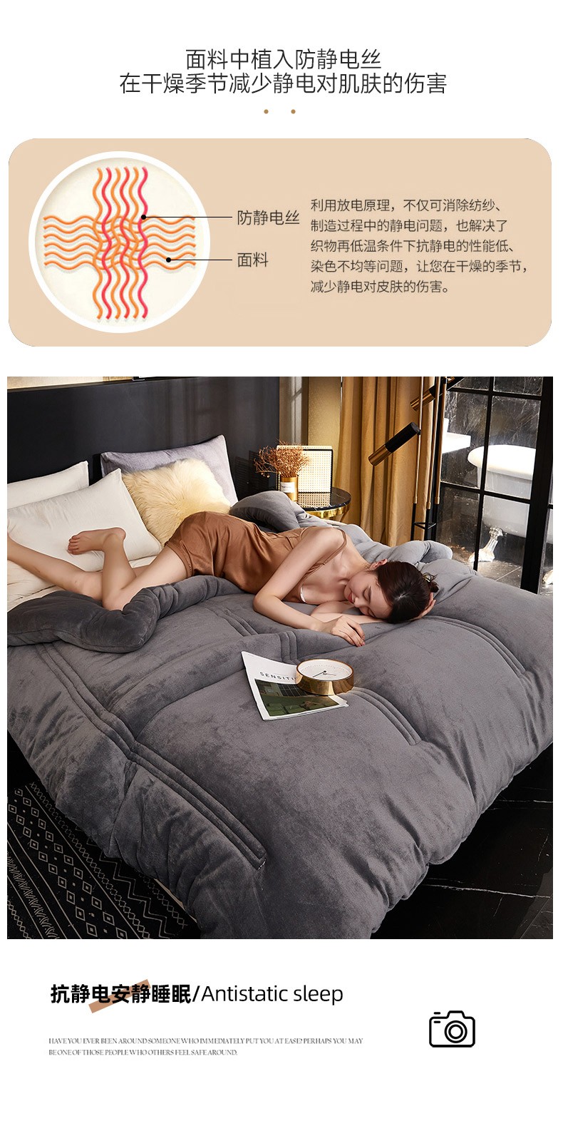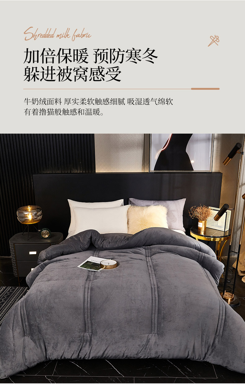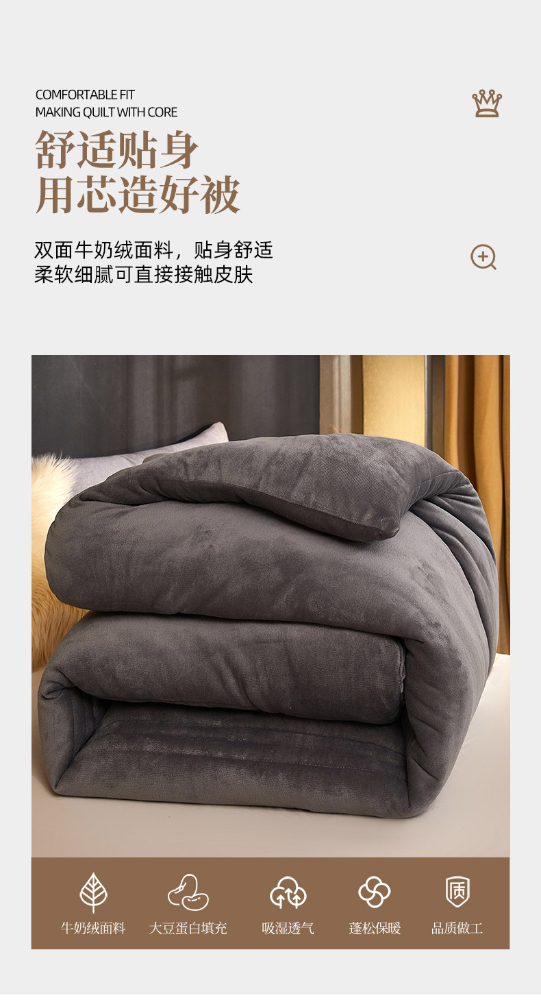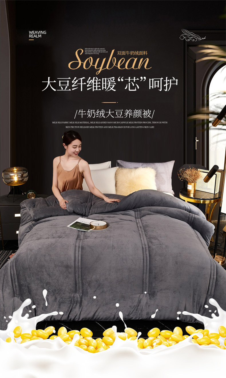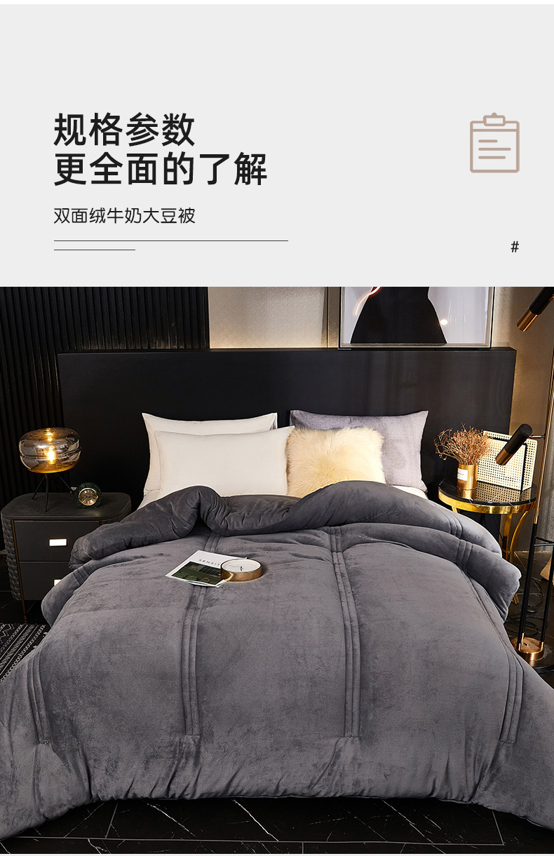 商品名称:钰博 2023新款双面牛奶绒大豆养 颜被 深灰色