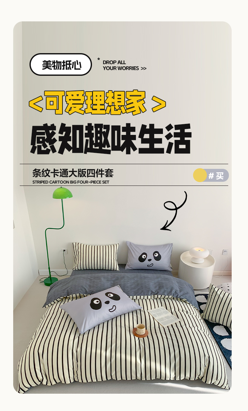 澳萝拉 2024新款全棉条纹卡通大版四件套 伊丽莎白