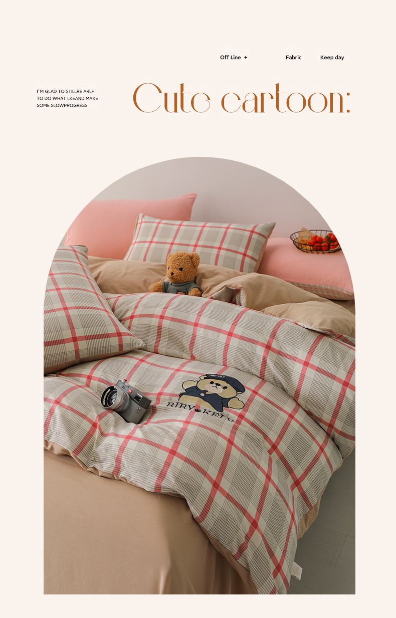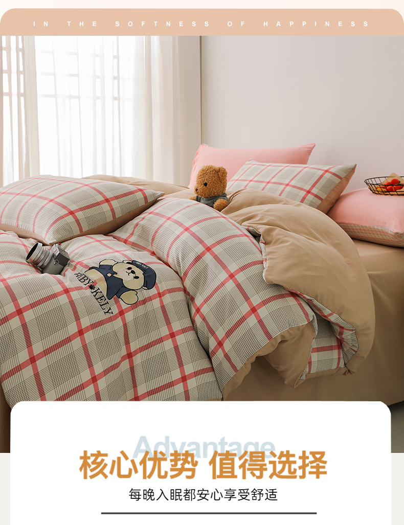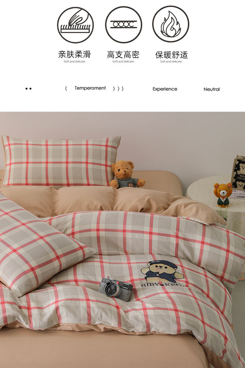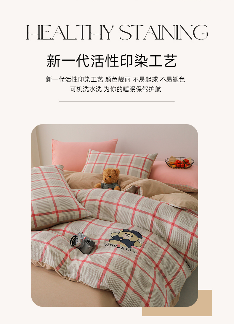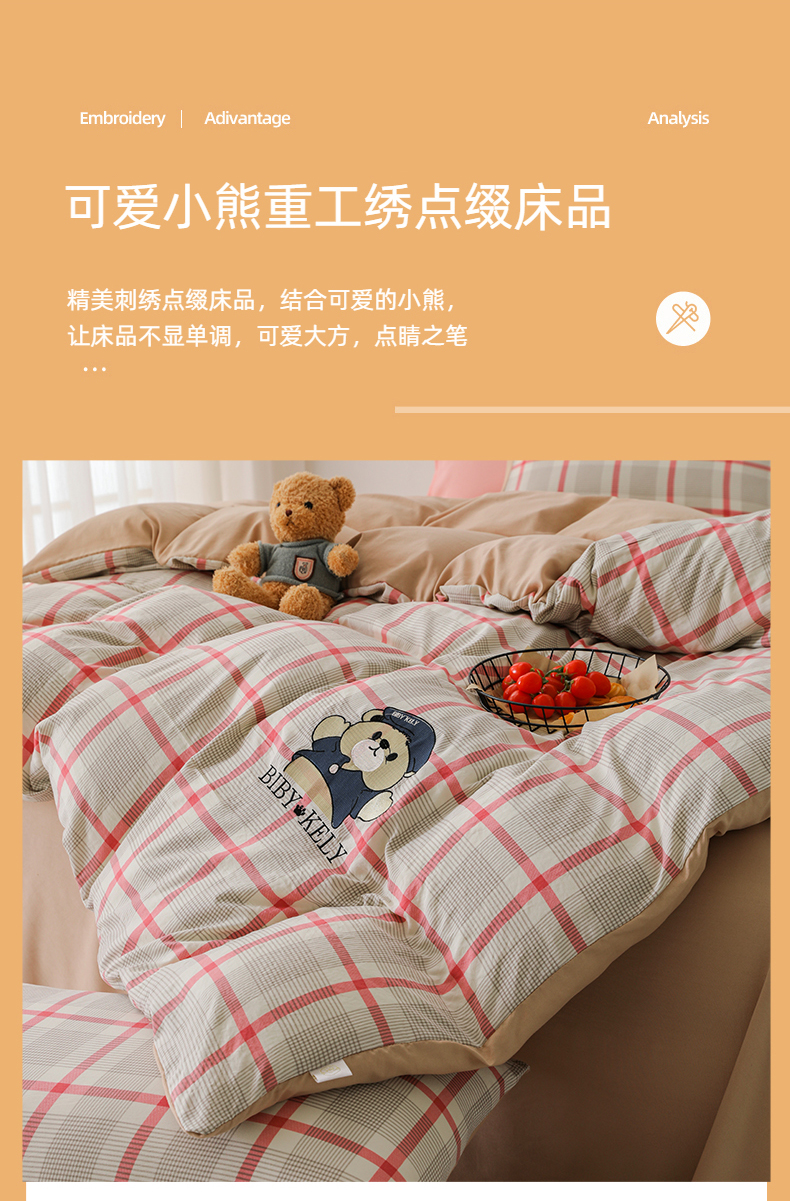 商品名称:潮邦创意家居 2025新款春夏亲肤水洗棉刺绣四件套-贝恩熊 贝恩熊-英伦红