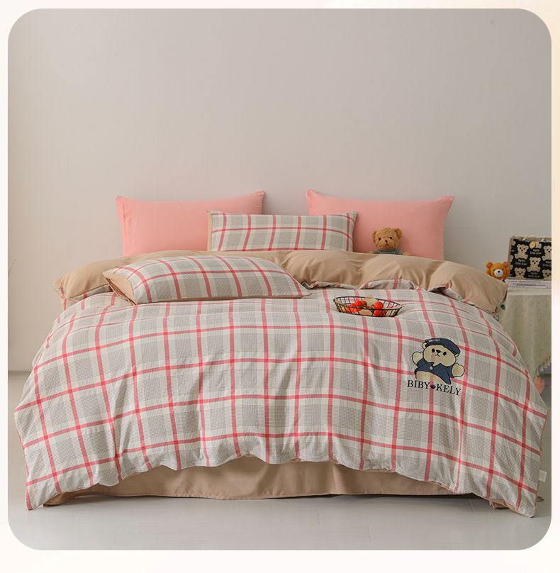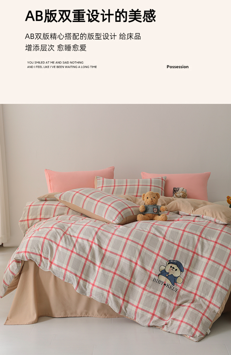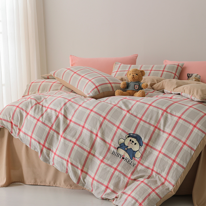 潮邦创意家居 2025新款春夏亲肤水洗棉刺绣四件套-贝恩熊 贝恩熊-英伦红