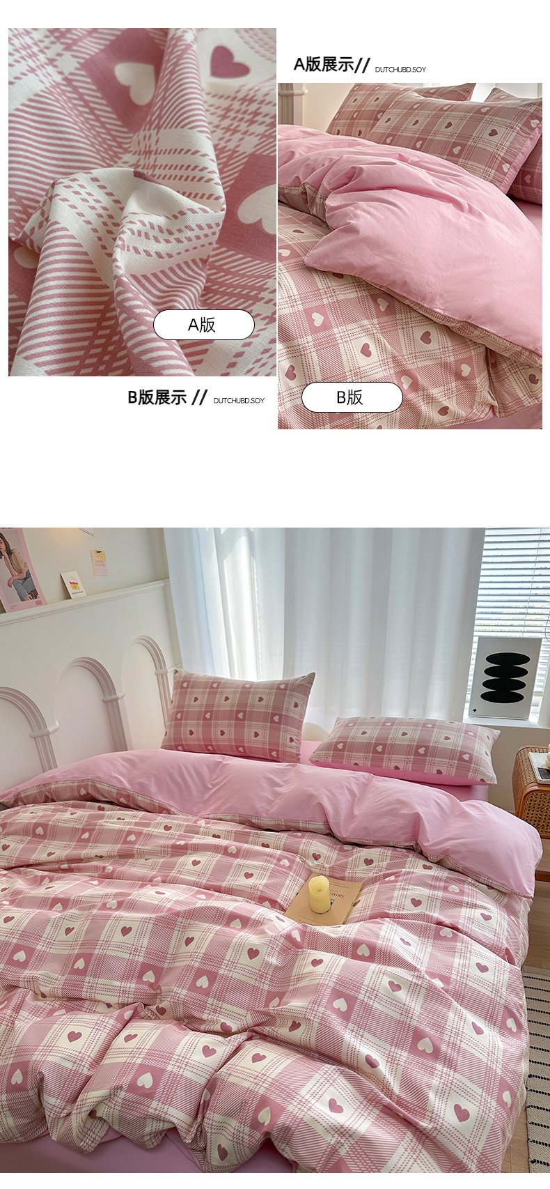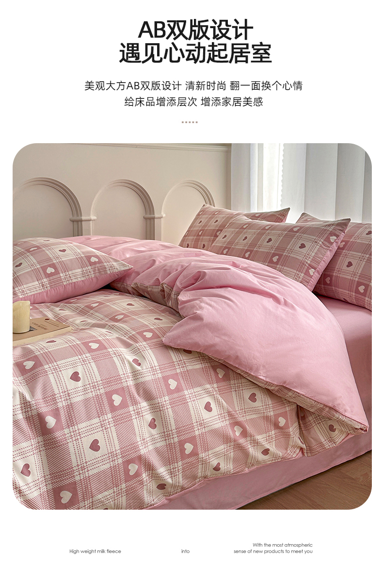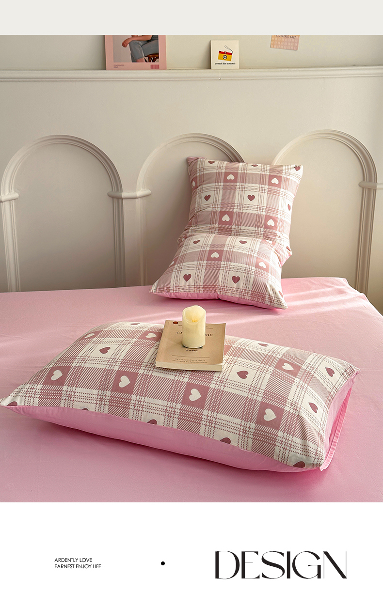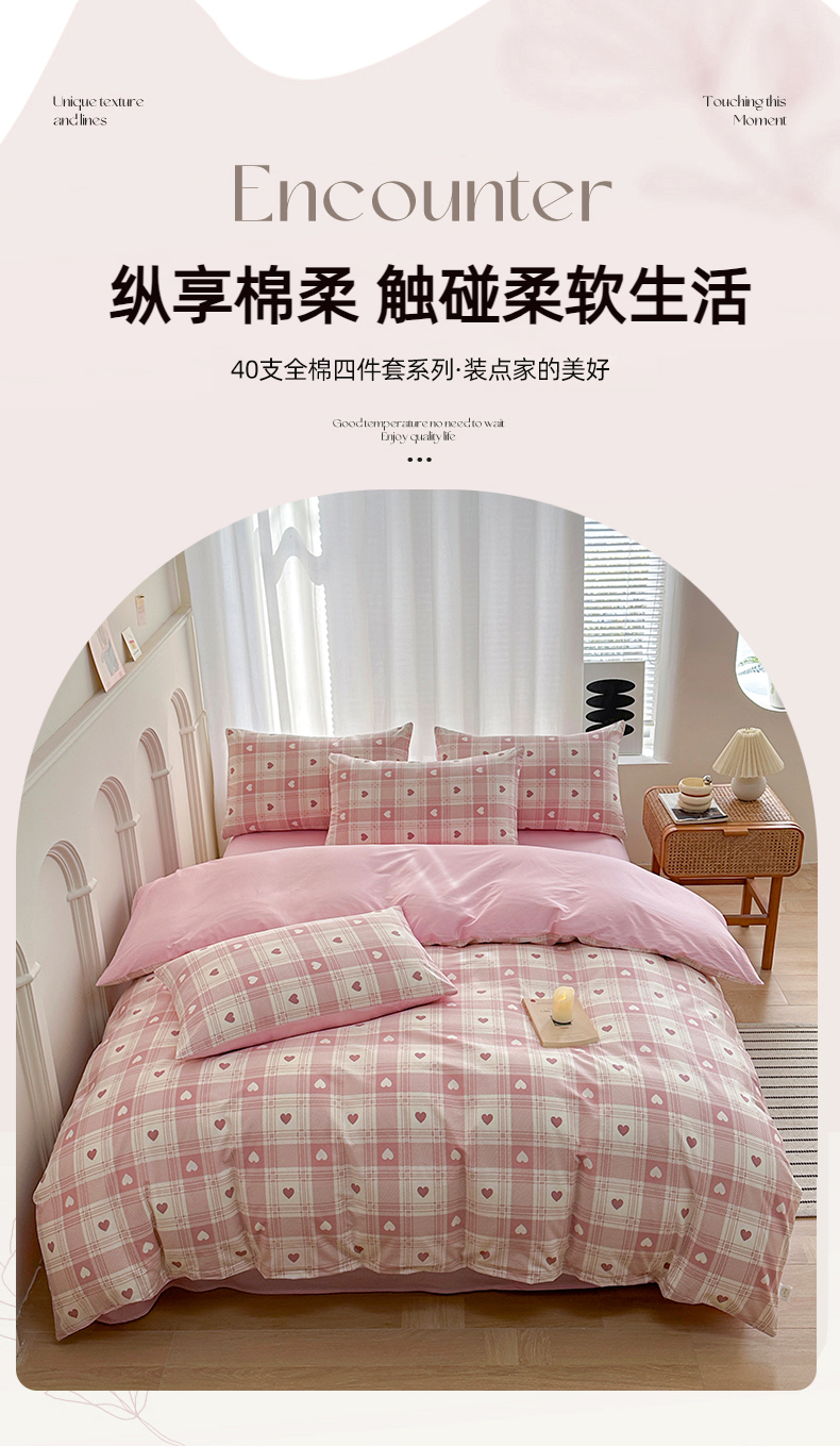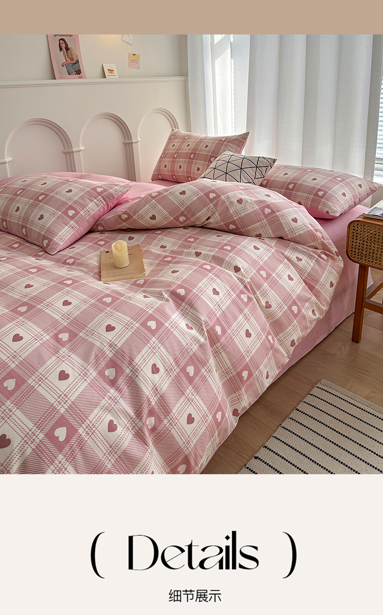 潮邦创意家居 2025新款全棉13070多风格纯棉四件套-简约条格系列 美菱格 粉