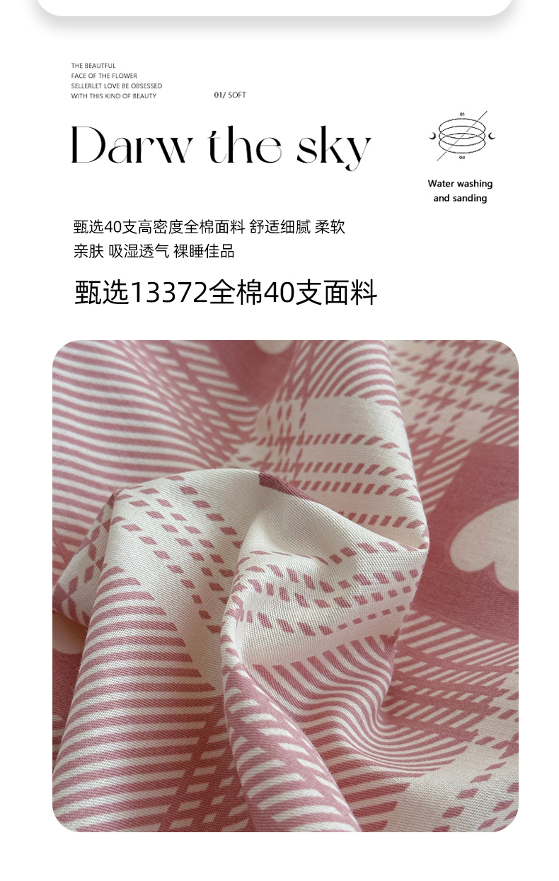 商品名称:潮邦创意家居 2025新款全棉13070多风格纯棉四件套-简约条格系列 美菱格 粉