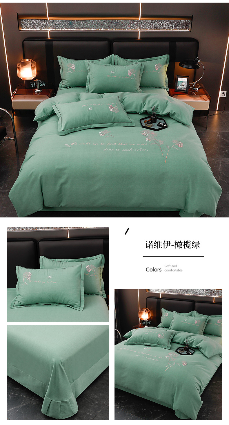 商品名称:润淳家居 2025新款全棉磨毛刺绣四件套 诺维伊 橄榄绿