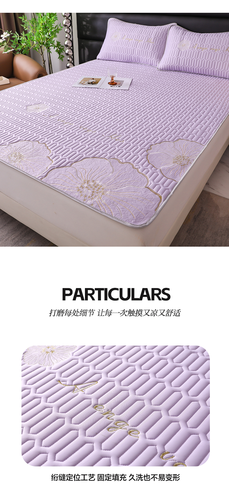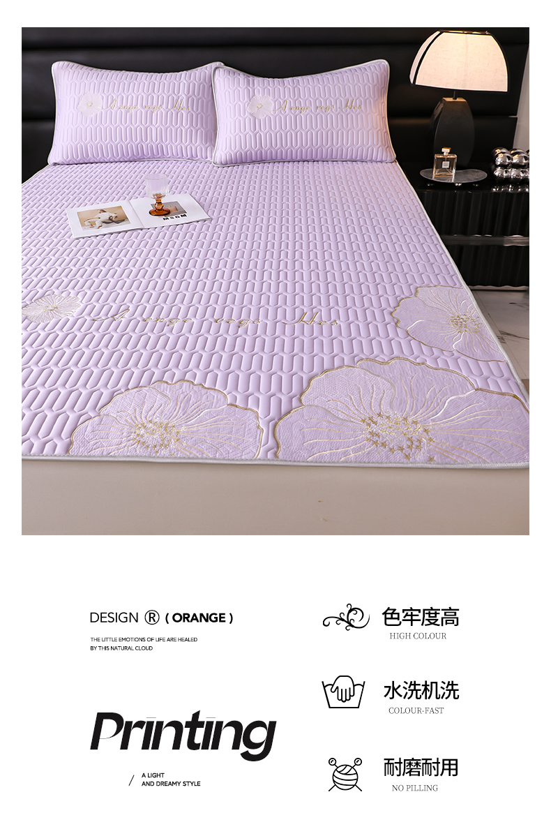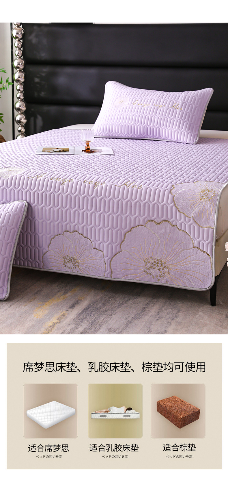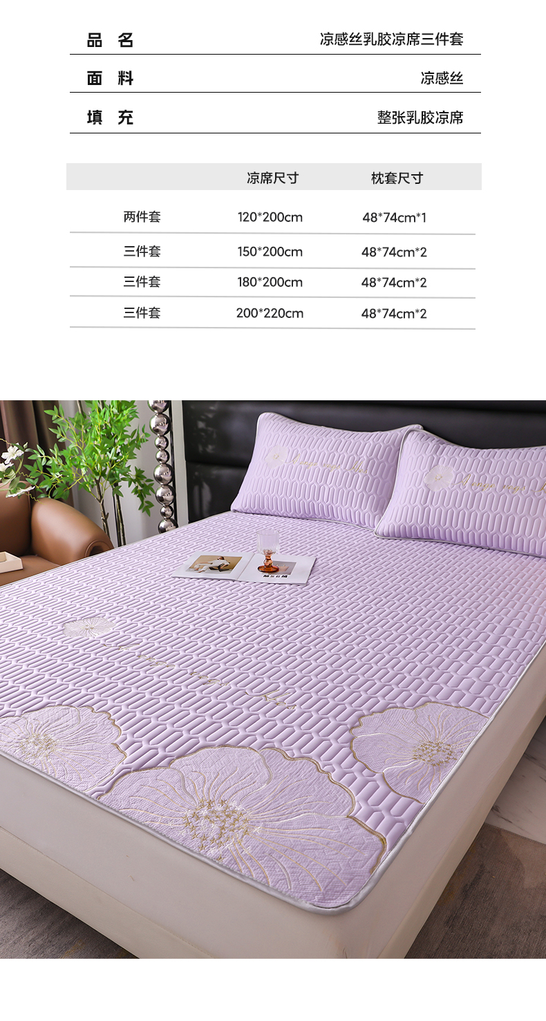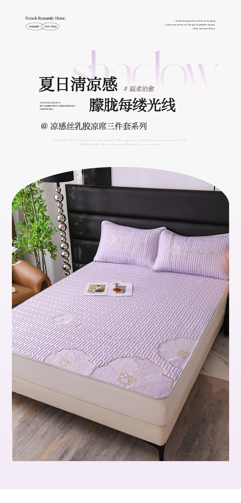 商品名称:你好美丽 2025新款凉感丝绣花0.6乳胶凉席三件套-盛世年华 雪青