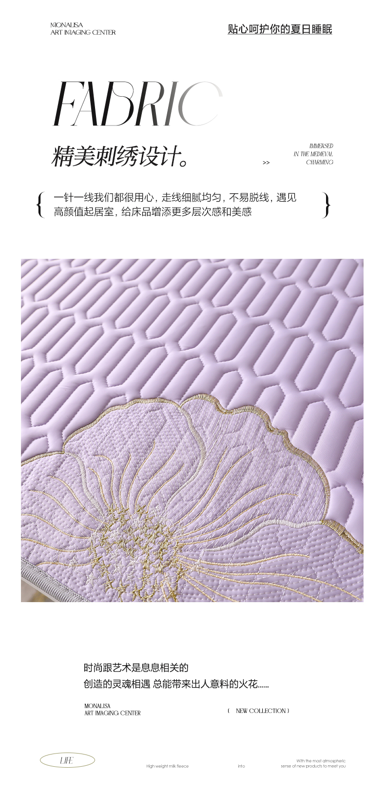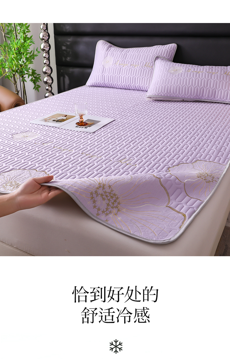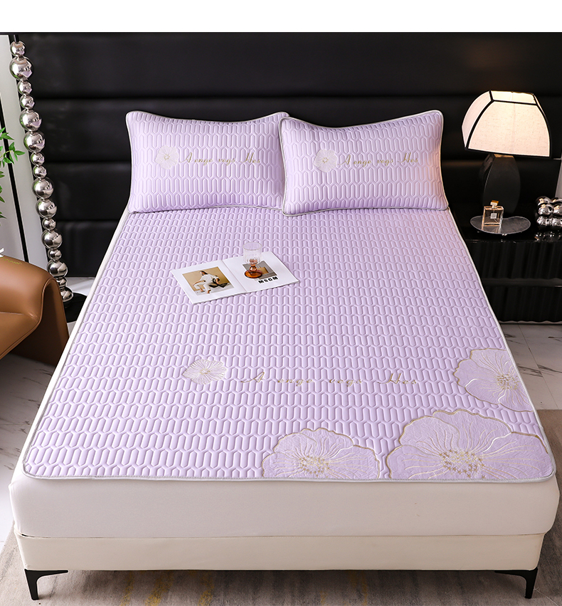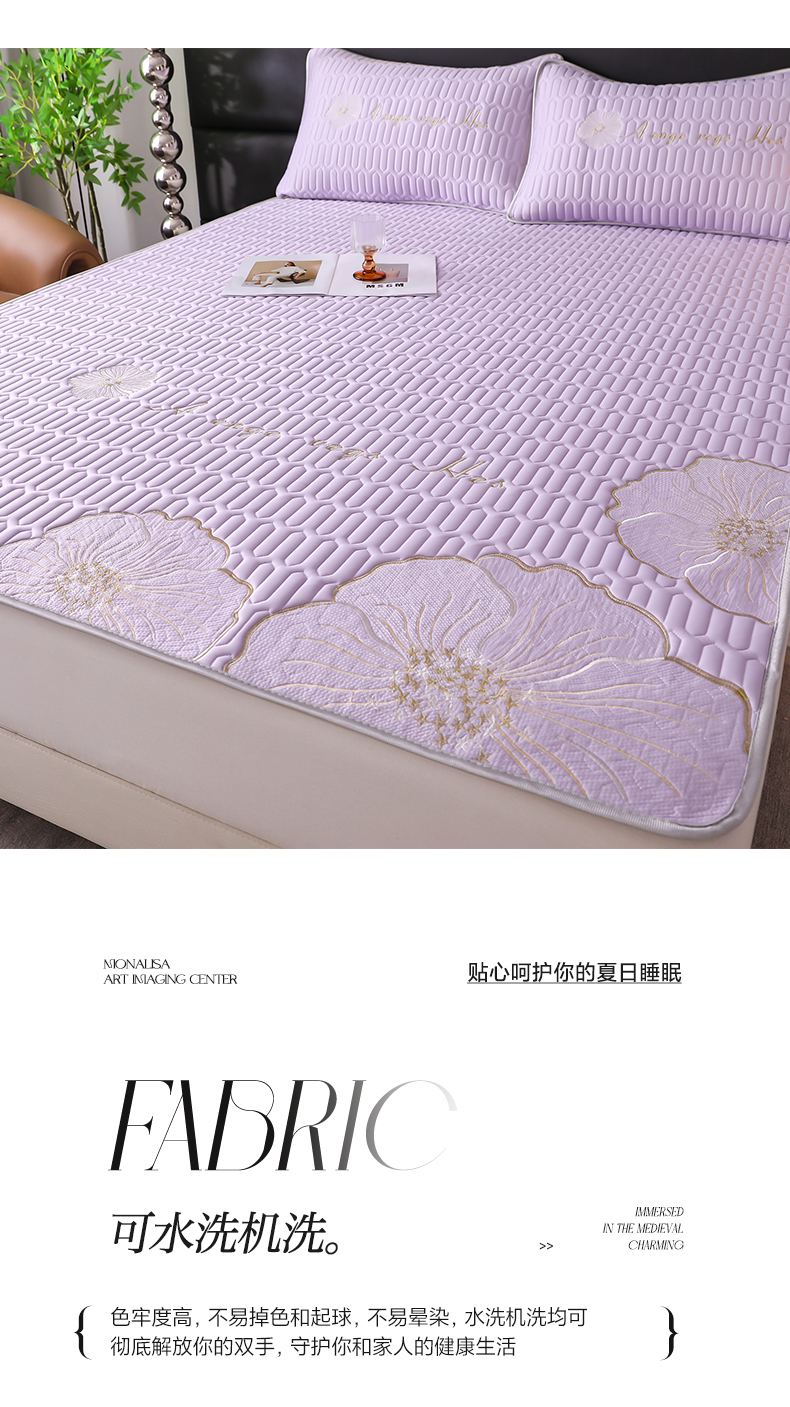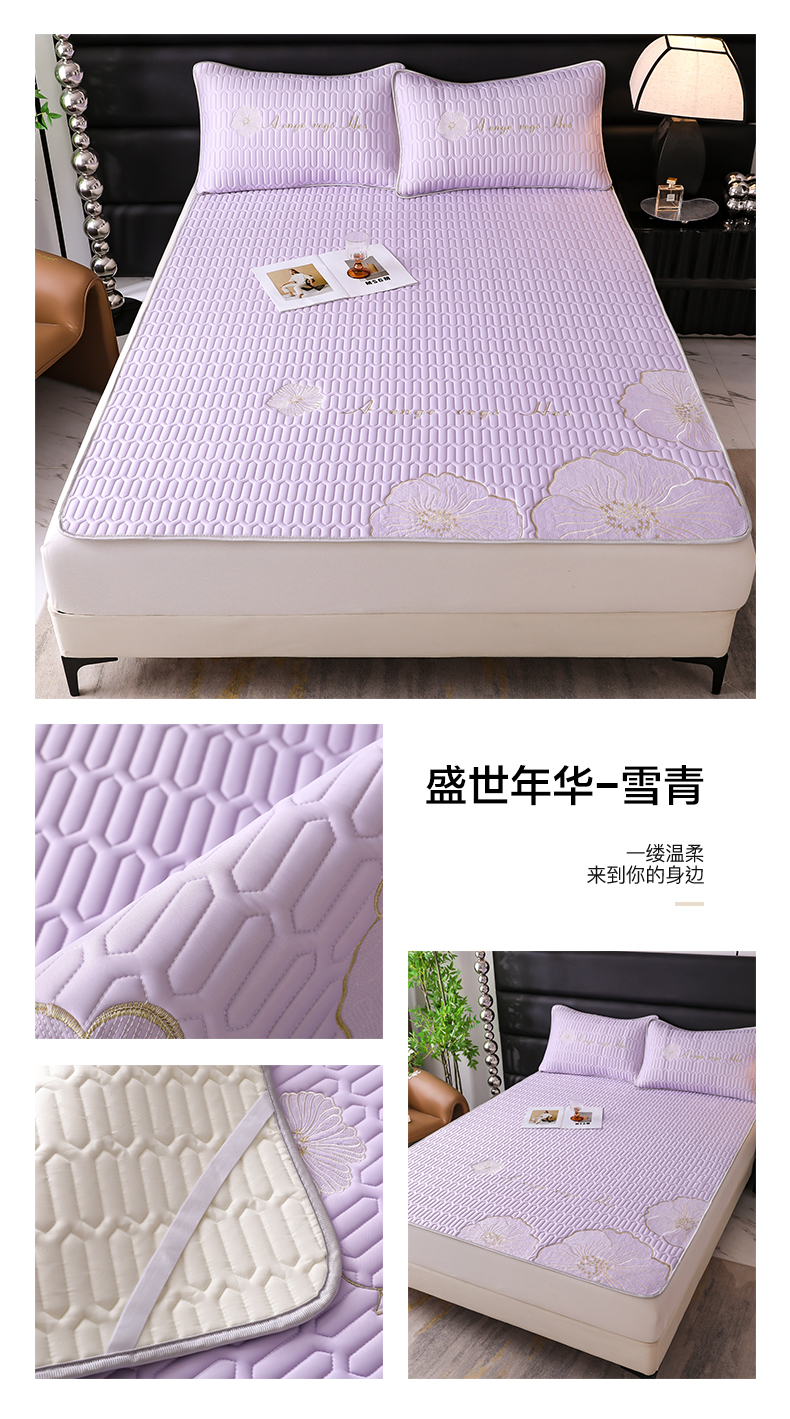 你好美丽 2025新款凉感丝绣花0.6乳胶凉席三件套-盛世年华 雪青