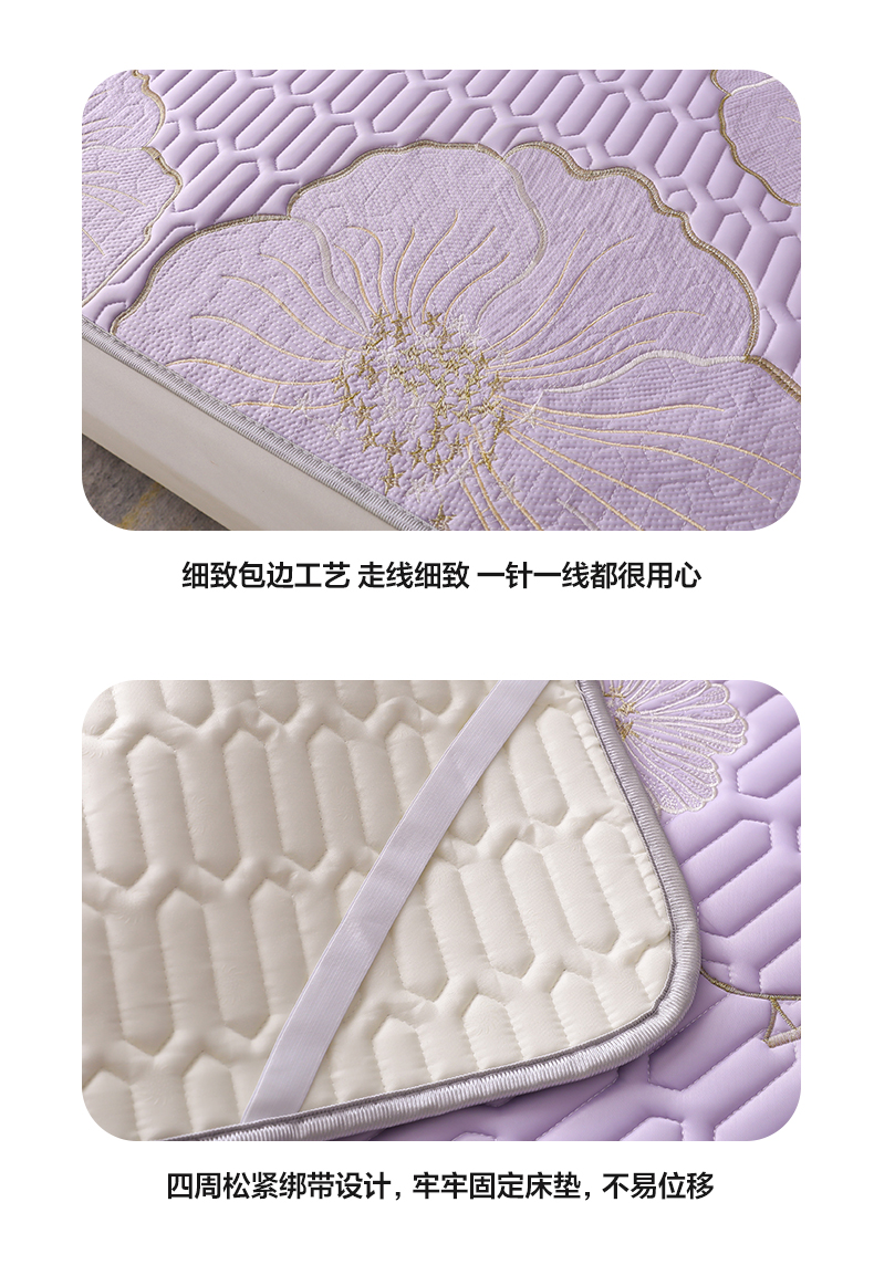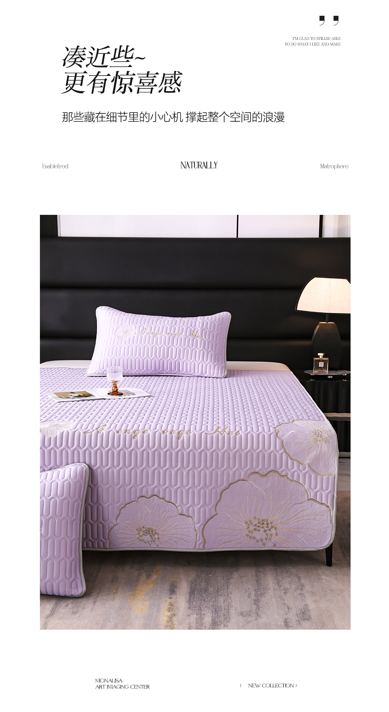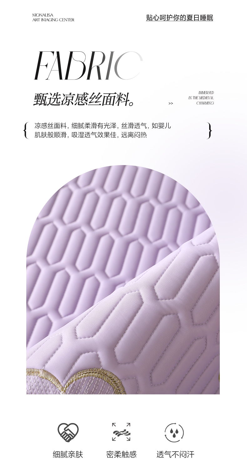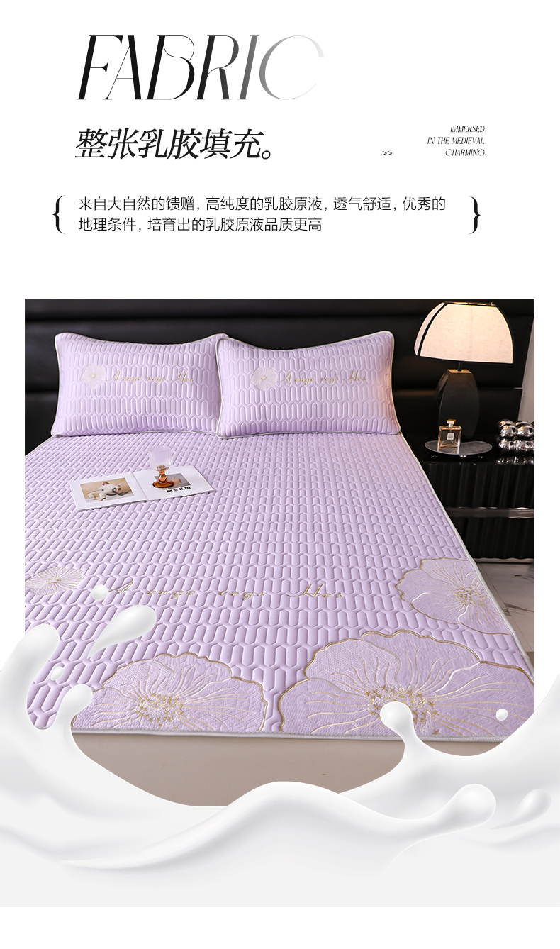 你好美丽 2025新款凉感丝绣花0.6乳胶凉席三件套-盛世年华 雪青