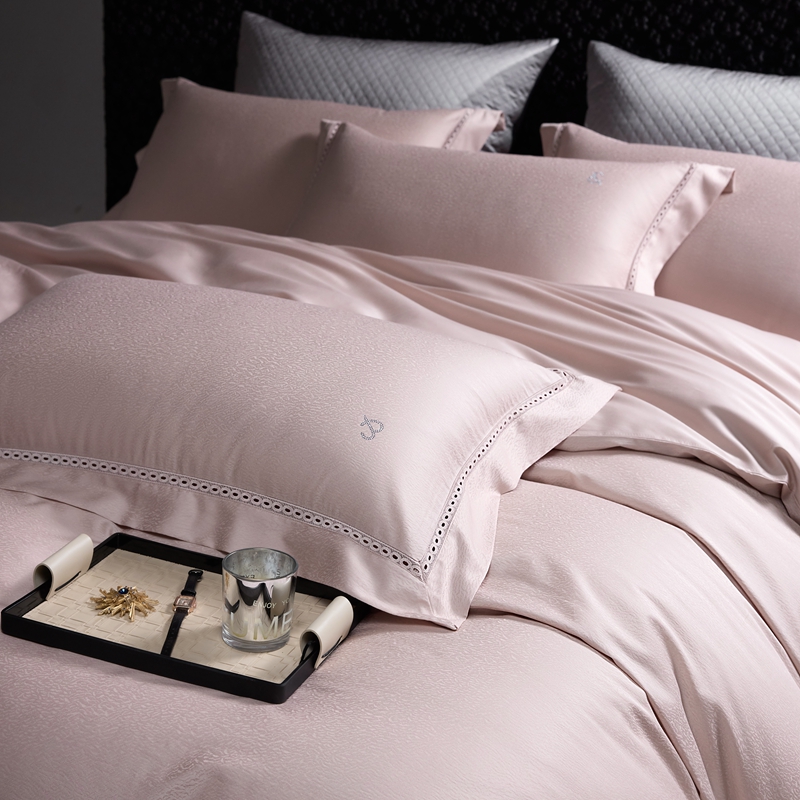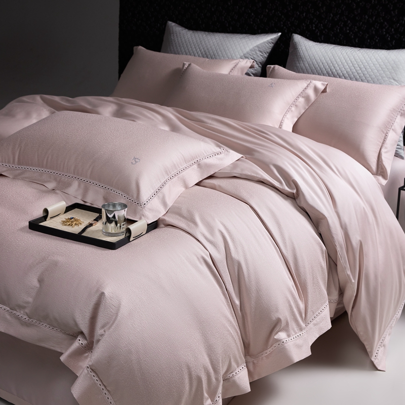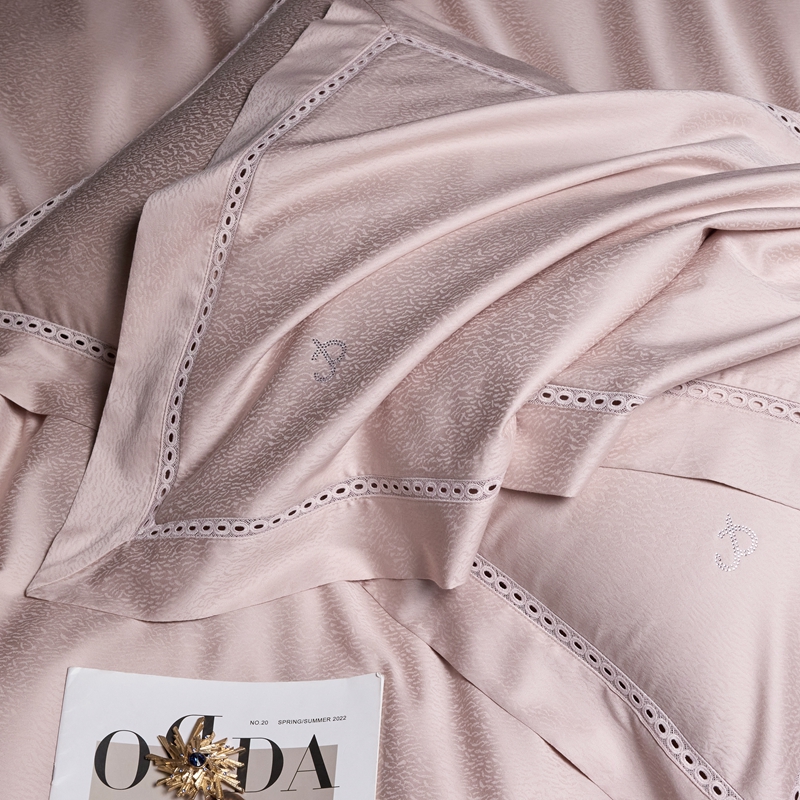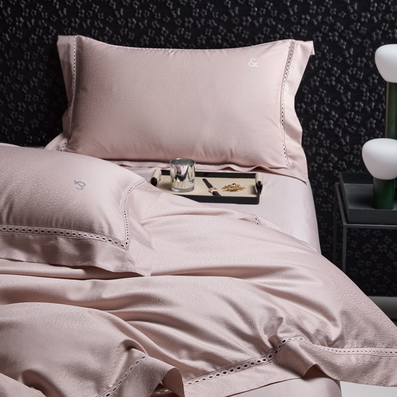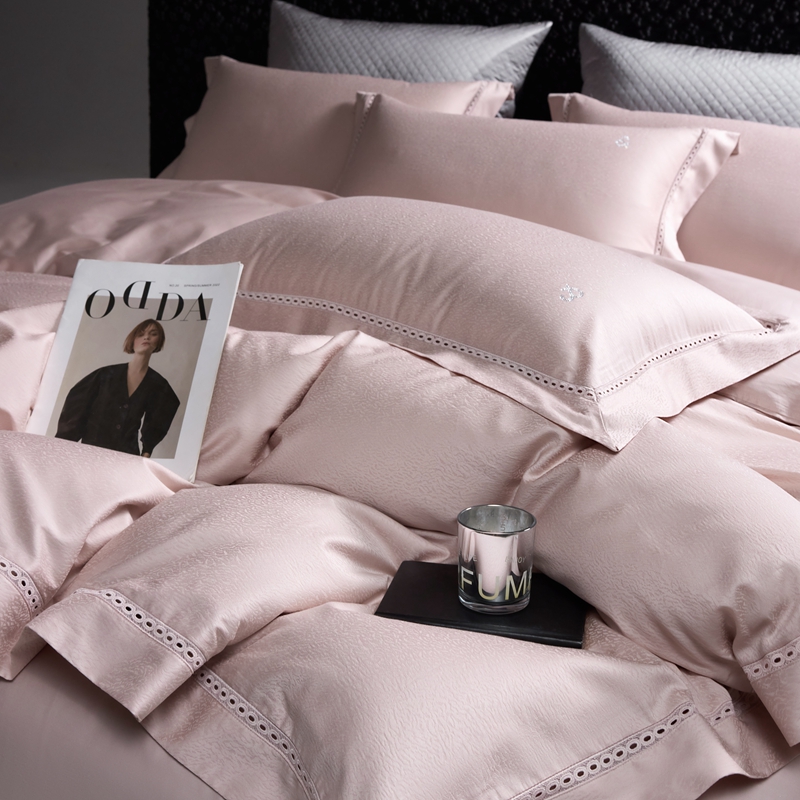 榻尚家居 2024新款纯棉贡缎镂空提花四件套-悦色 悦色-豆沙粉