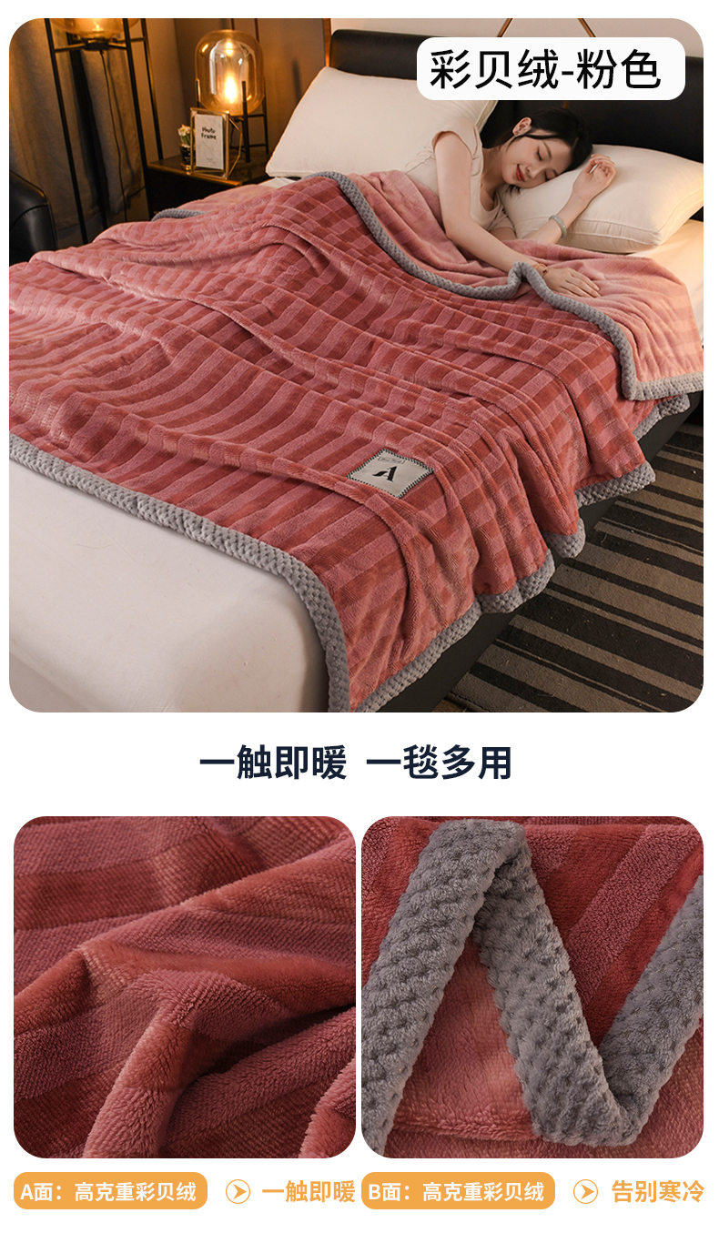 商品名称:恋绒家纺 2025新款双面绒休闲毛毯多功能毛毯牛奶绒毯子法莱绒盖毯 彩贝绒-粉色
