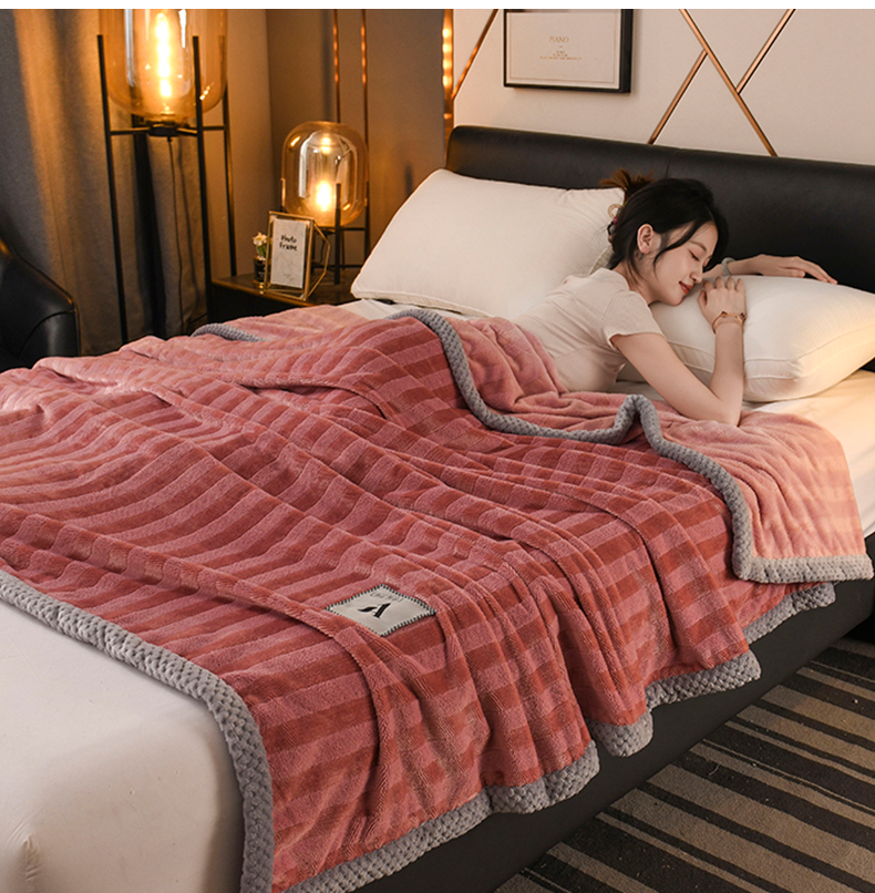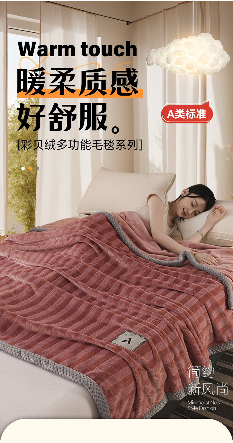 恋绒家纺 2025新款双面绒休闲毛毯多功能毛毯牛奶绒毯子法莱绒盖毯 彩贝绒-粉色