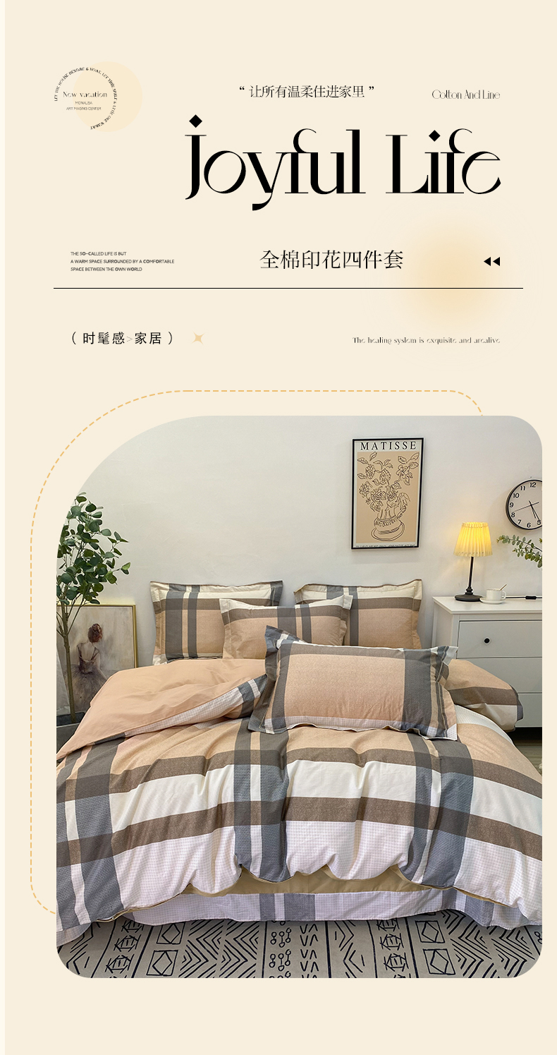 橙艺家居 2024新款铂金柔棉全棉印花四件套 池奈